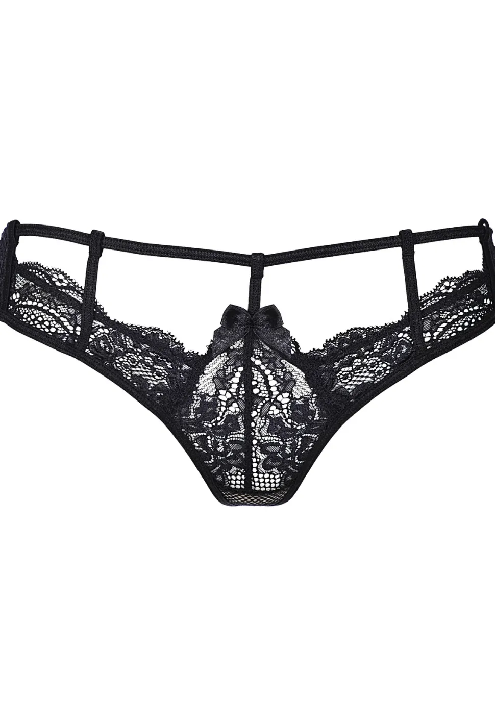 Dieser atemberaubende, schwarze String ist mit zusätzlichen elastischen Bändchen und Spitze versehen, was für einen sexy Look sorgt. Auf der Vorderseite ist mittig ein dekoratives Schleifchen platziert. bei diesem String wird niemand den Blick von Dir lassen können!