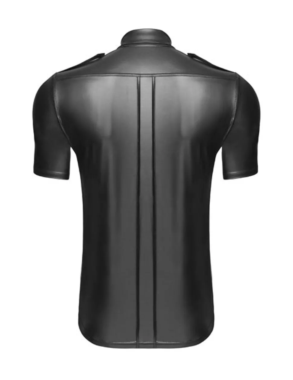 Hier zeigt Noir Handmade wie gut ein Wetlook Hemd aussieht, und wie leicht und angenehm es sich tragen lässt. Aufwändige Schnittführung mit Schulterklappen, Pattentaschen und Druckknöpfen. Das feine, weiche, elastische Material wird der exklusiven Verarbeitung gerecht.