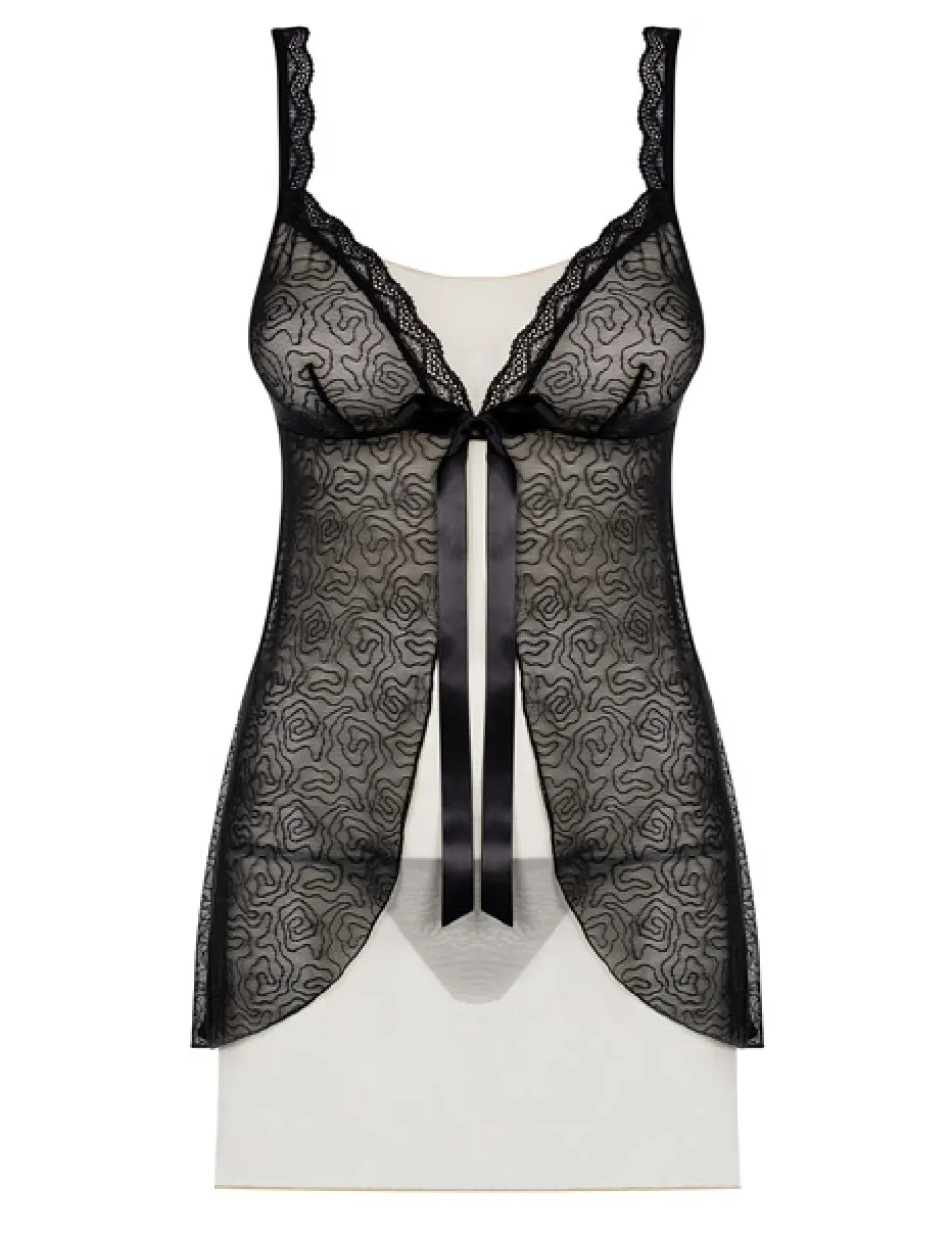 – verführerische Schicht aus schwarzem Netz mit offenem Frontdesign