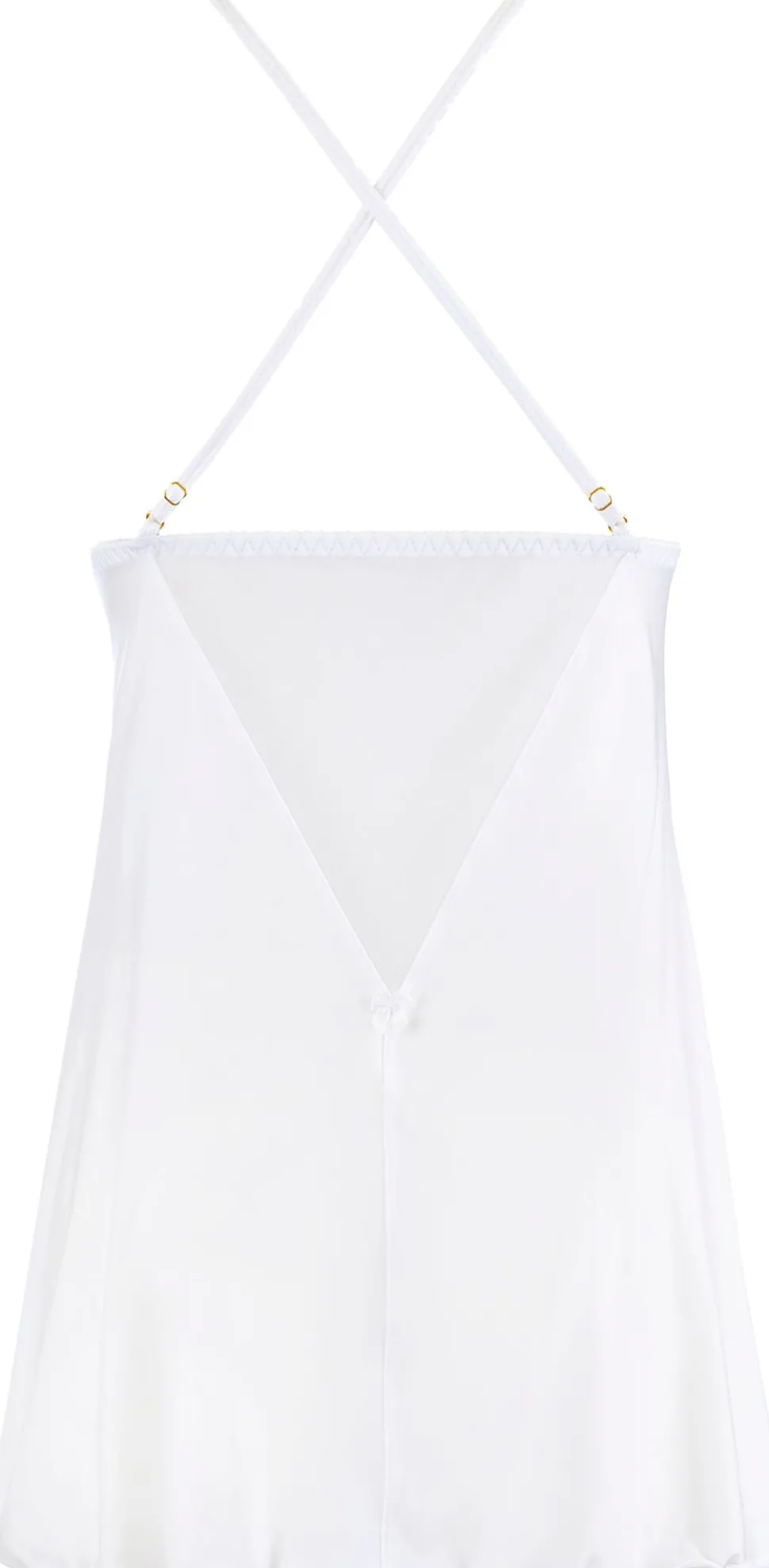Elegantes Babydoll aus feinem Material-Mix. Durchscheinende und Blickdichte Elemente. Das feine Material sorgt für hohen Tragekomfort und passt sich gut an. Die gekreuzten Träger sind verstellbar. Der passende String ist inklusive. MUST HAVE!