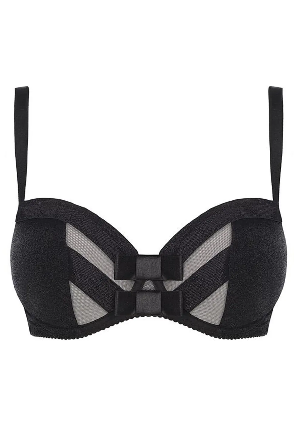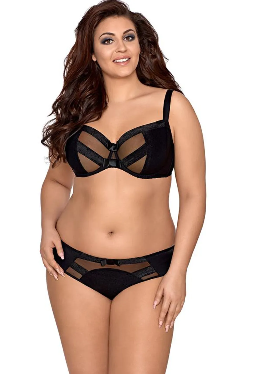 Dieser atemberauende, schwarze Plus-Size-BH lässt Deine Oberweite zum wahren Hingucker werden. Die Kombination aus zartem Tüll und dem leicht glänzendem Material wirkt besonders schön & erotisch. Einfach ein Must-Have!