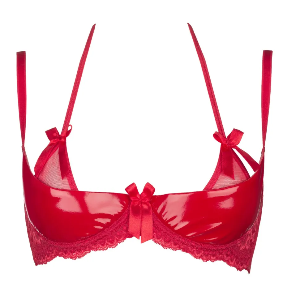 Bezaubernder BH im Wetlook-Style gefertigt aus zarten Materialien. Mit eingearbeiteten Bügeln. An der Seite mit eingenähten Stäbchen. Die extra breiten Träger sind verstellbar, dadurch wird ein hoher Tragekomfort gewährleistet Auf der Rückseite mit einem 3-fach verstellbaren Hakenverschluss versehen. Das weiche Material liegt angenehmen auf der Haut. Die Cups sind von innen ganz leicht gepolstert Zwischen den Cups und an den Trägern mit dekorativen Schleifchen versehen.