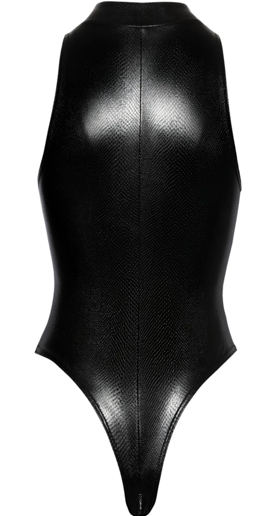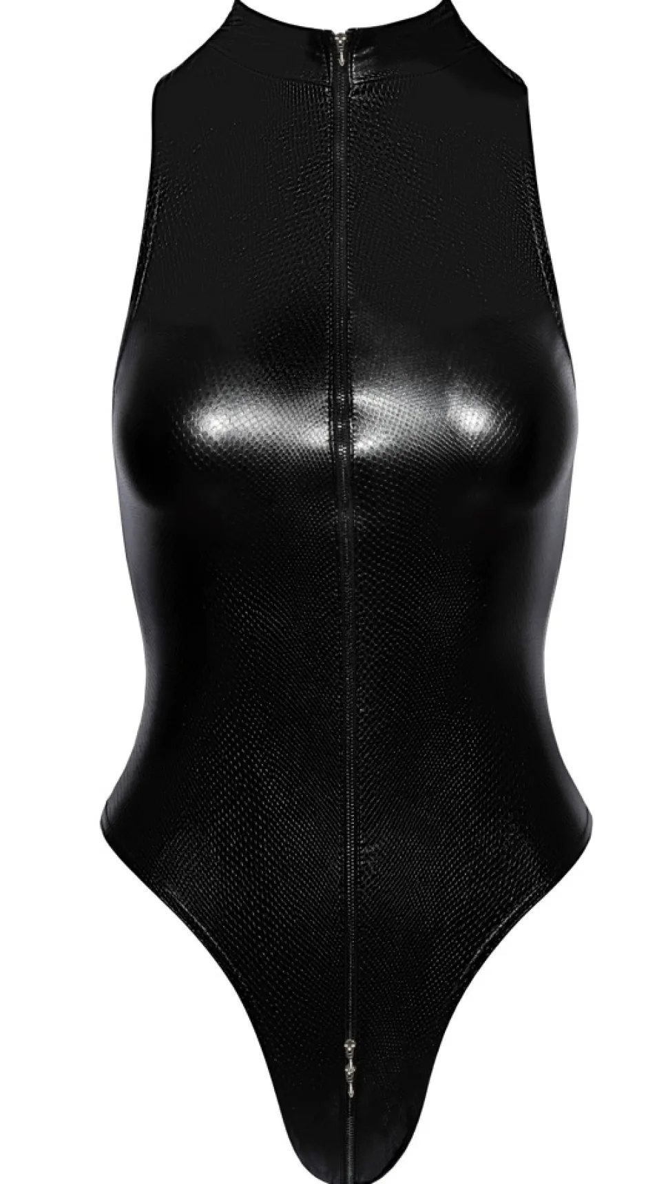 Hauteng geschnittener Body von Noir in mattglänzend schillernder Schlangenhaut-Optik – schmiegt sich an wie eine zweite Haut. Dabei weich und elastisch für maximalen Tragekomfort. Extra hohe Beinausschnitte setzen Po und Beine aufregend in Szene. Praktisch und erotisch zugleich ist der 3-Wege-Reißverschluss aus Metall, der vom kleinen Stehkragen durch den Schritt bis über den Po verläuft – er lässt sich vielseitig öffnen und schließen.