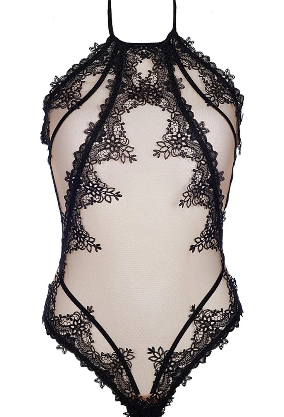Für wilde Nächte gemacht! Mit diesem edlen Neckholder Body präsentierst Du Dich oscarreif. Der verführerische Body ist aus einem Mix von durchscheinendem Tüll und zarter Blütenspitze gefertigt und bringt Dein Gegenüber so richtig in Wallung. Die Rückseite besteht nur noch aus elastischen Riemchen – wahnsinnig sexy! Dieses Dessous kitzelt aus jedem Figurtyp die schönsten Vorzüge heraus!