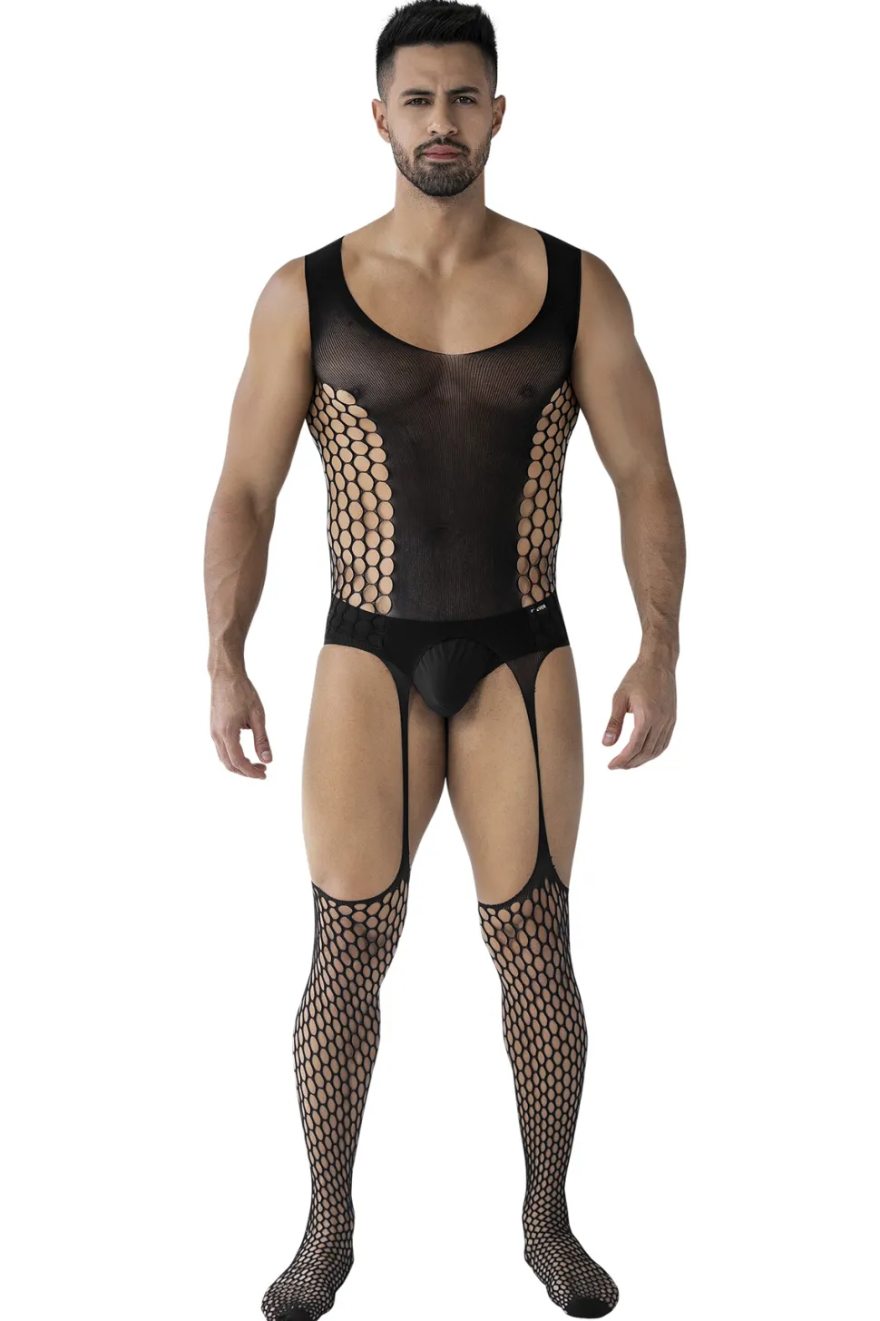 Bodystocking aus dehnbarem Netzmaterial, im Schritt offen. Kommt ohne Slip!