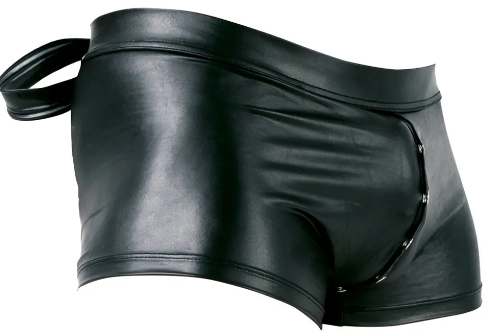Schwarze Pants von Svenjoyment Bondage im edlen Mattlook. Elastisch und anschmiegsam für hohen Tragekomfort. Mit Druckknopfverschluss von vorne, durch den Schritt bis über den Po. Hinten können am Bund die beiden beiliegenden Fesselriemen befestigt werden, um die Hände auf dem Rücken zu fixieren. Die Fesselriemen im Mattlook haben jeweils einen verstellbaren Klettverschluss.