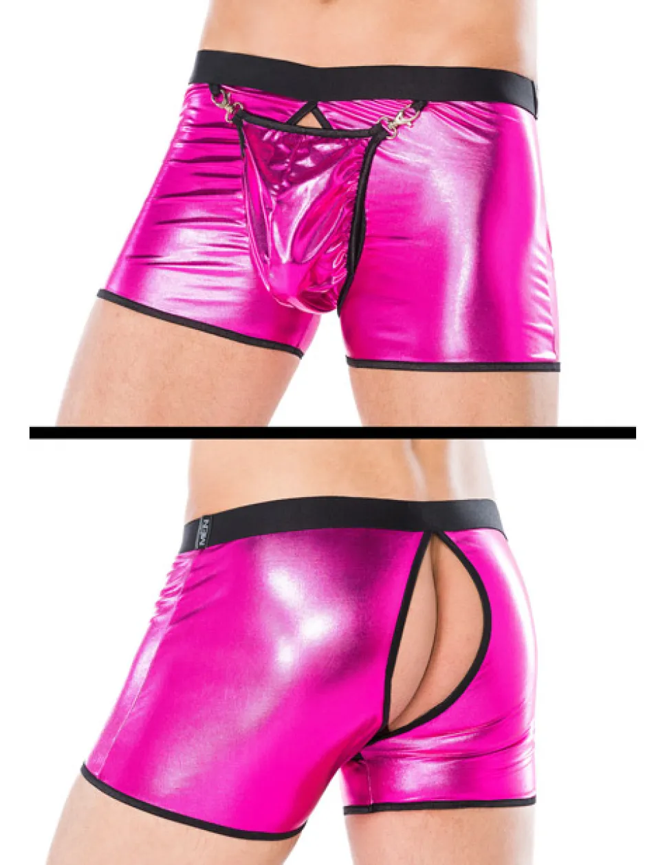 – Pinke Herren-Shorts aus dehnbarem Wetlook-Material