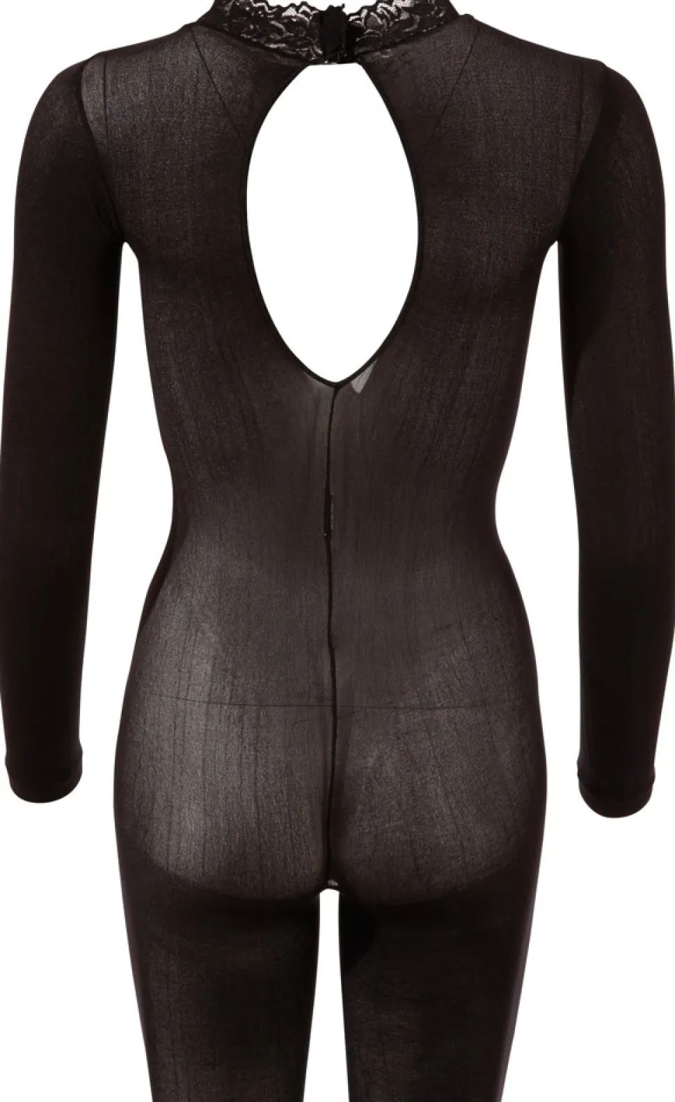 NO:XQSE schwarzer Langarm-Catsuit im Schritt geöffnet.