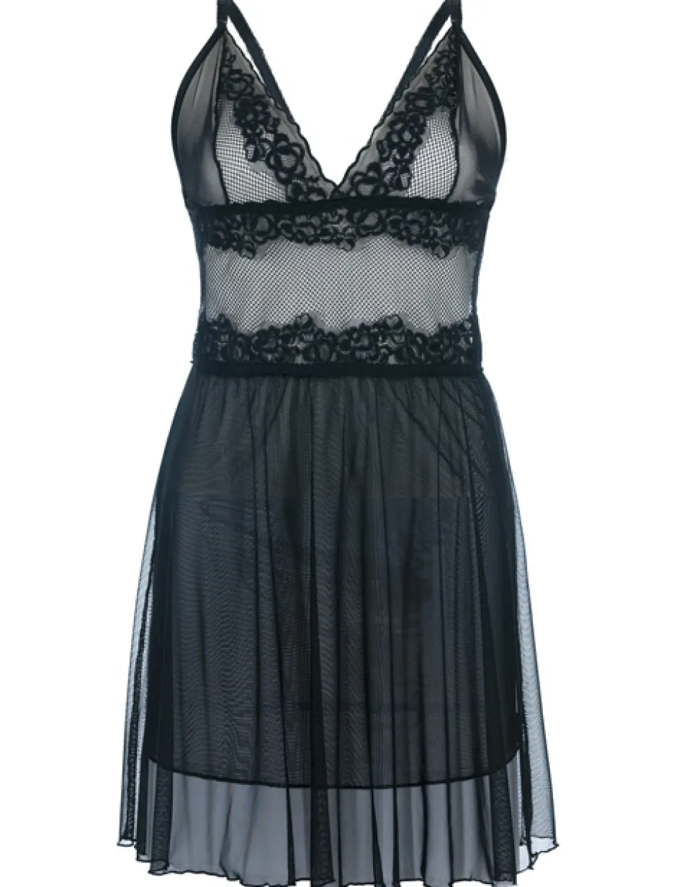– Transparente Chemise aus einer Doppelschicht Tüll am unterem Saum