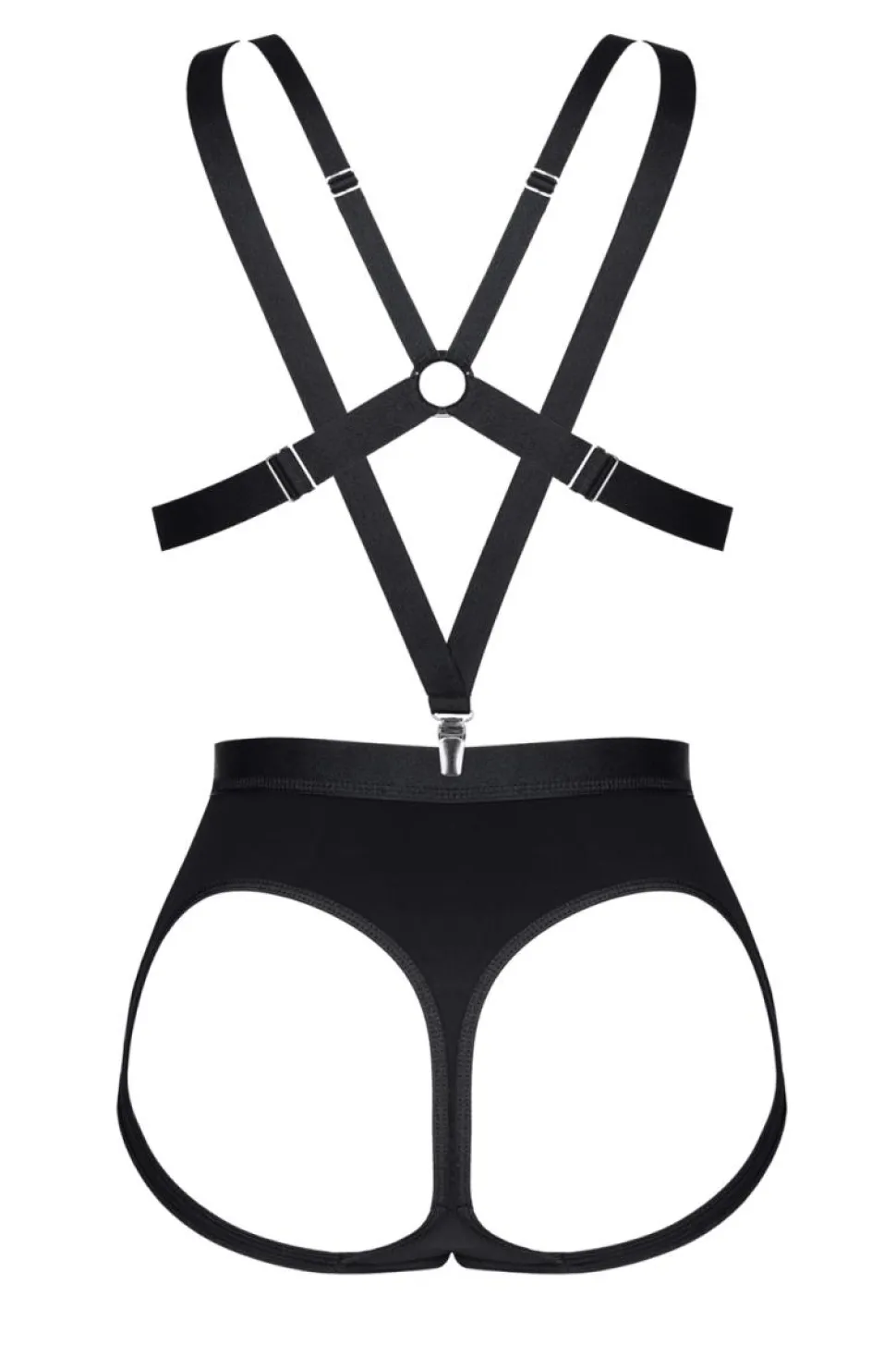 dieses sexy Clubwear besteht aus einem BH und einer ouvert Panty. Gefertigt wurden diese heißen Teile aus feinem, dehnbahrem Material. Die Hosenträger, aus elastischen Gummibändern, sind verstellbar und haben Metallclips. MUST HAVE!