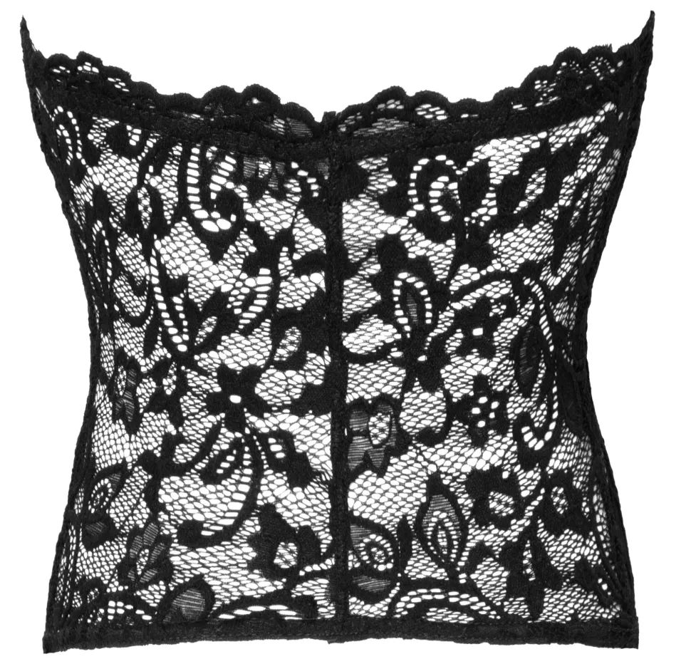 Trägerlose Corsage von Noir komplett aus anschmiegsamer Spitze. Rundum weich und elastisch für Passformsicherheit und hohen Tragekomfort. Vorne mit eingearbeitetem Formstab.