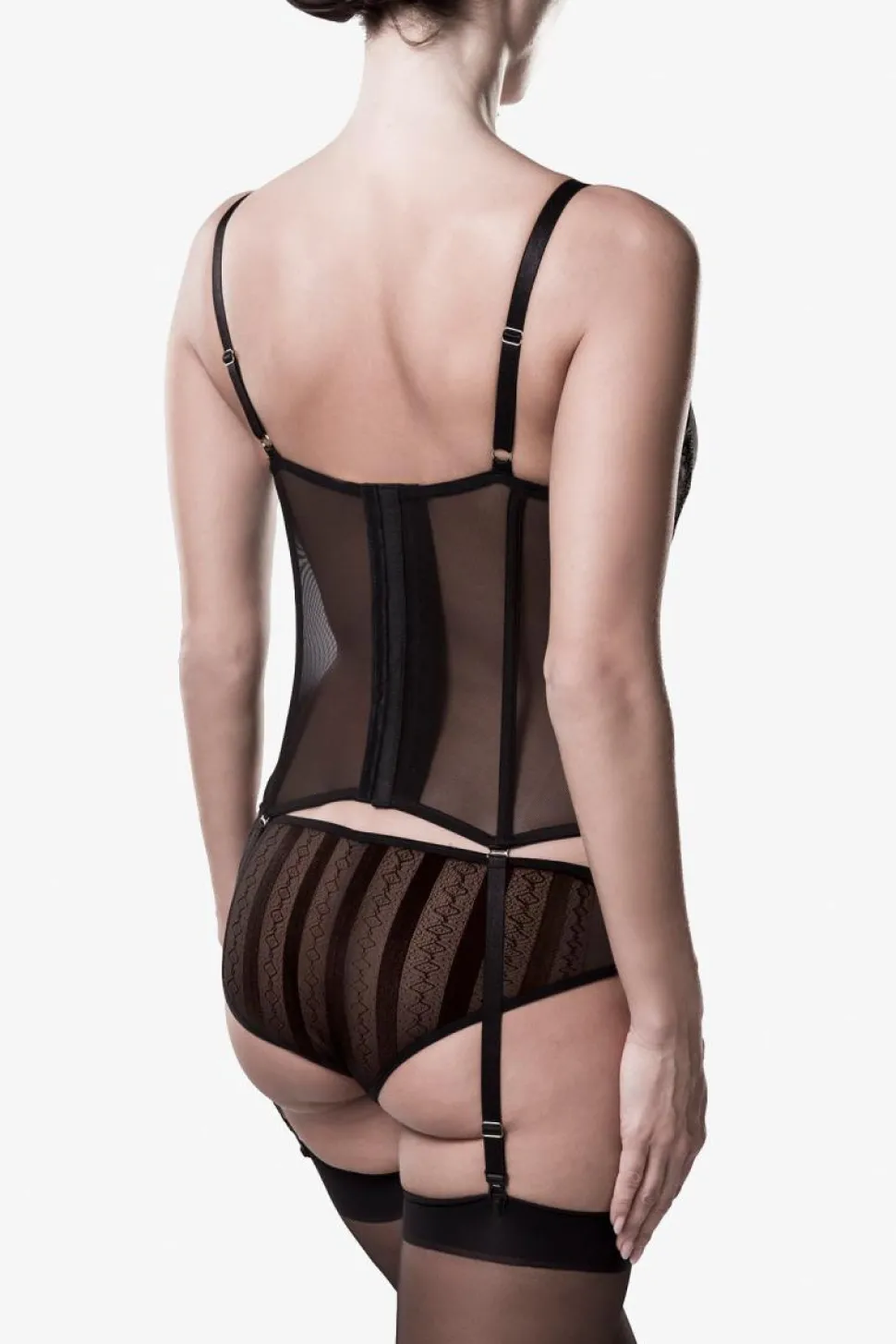 Stilvolle Corsage mit Schnürung an der Vorderseite und Häkchenverschnluss auf der Rückseite. Inklusive passendem Slip.