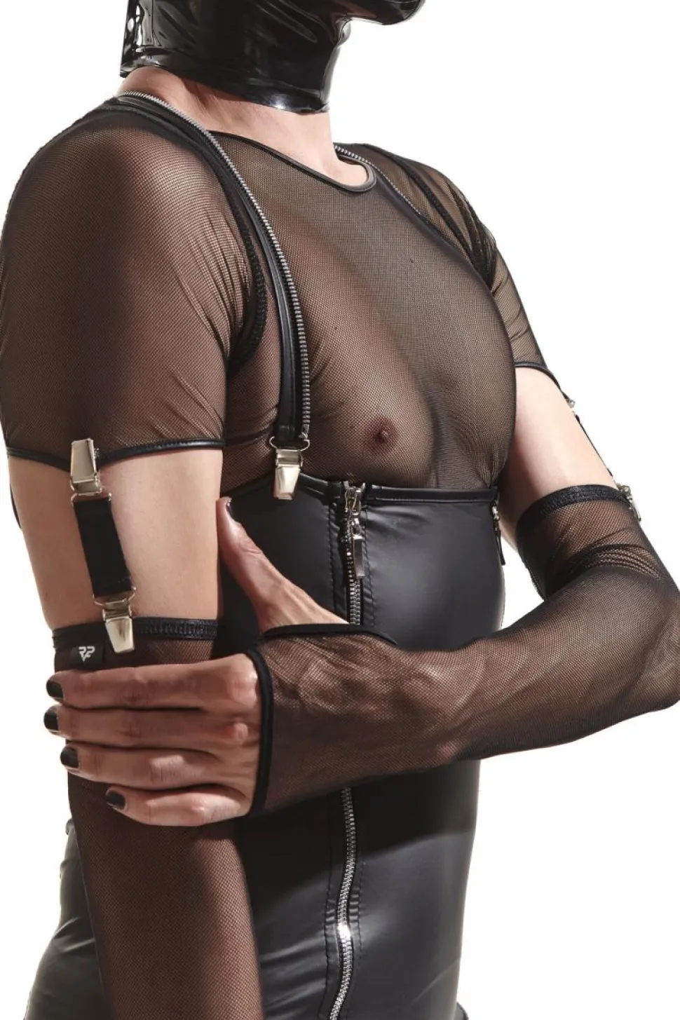 – lange Armstulpen aus dehnbarem Netzmaterial