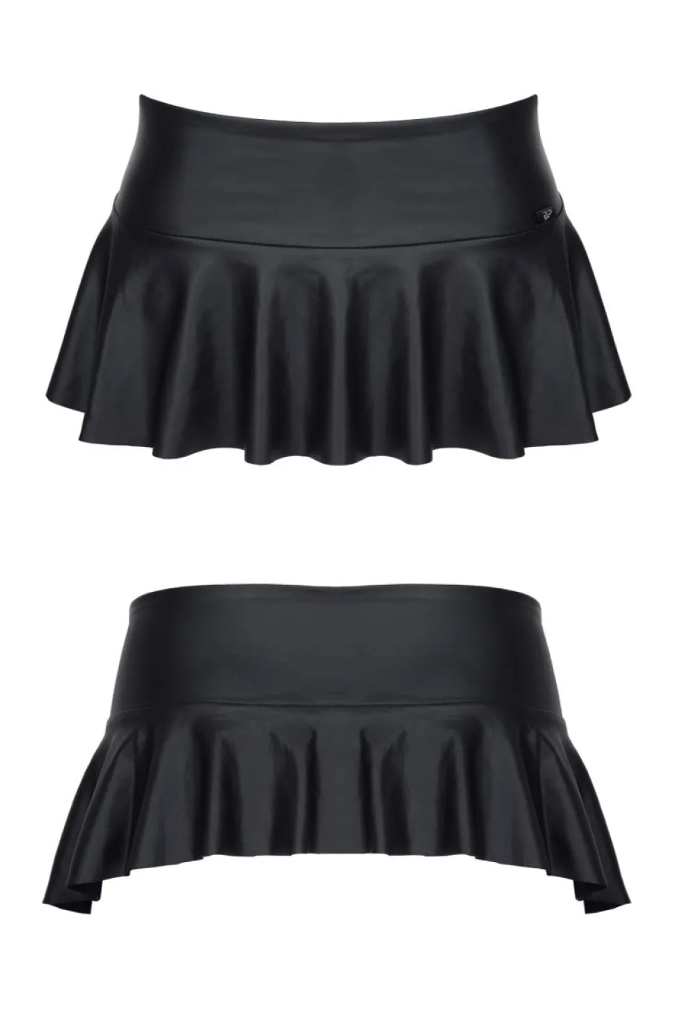 – schwarzer Minirock aus mattem Wetlook Material