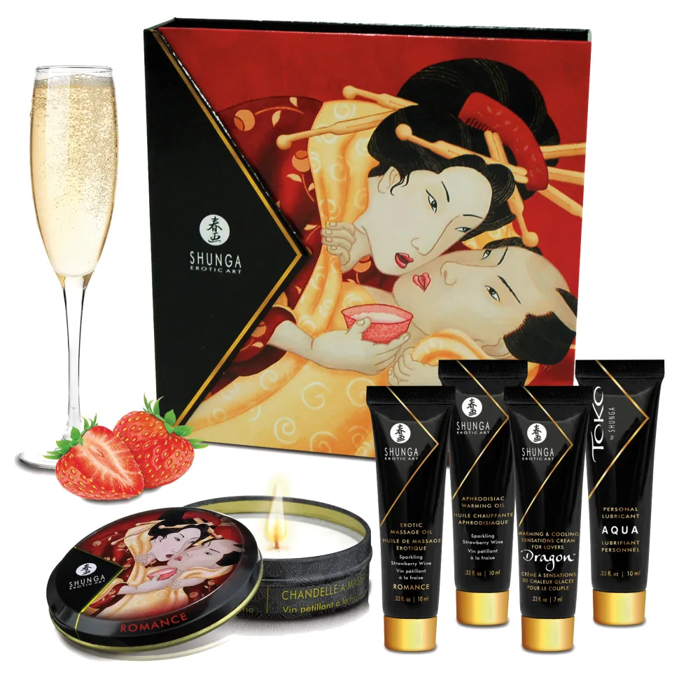 Ideal für Ihre amourösen Eskapaden. Inhalt: Erotisches Massageöl (10ml), Wärmendes Körperöl (10ml), Massagekerze ROMANCE (30ml), Gleitmittel TOKO AQUA (10ml), DRAGON Intensivierende Creme für Liebende (7ml).