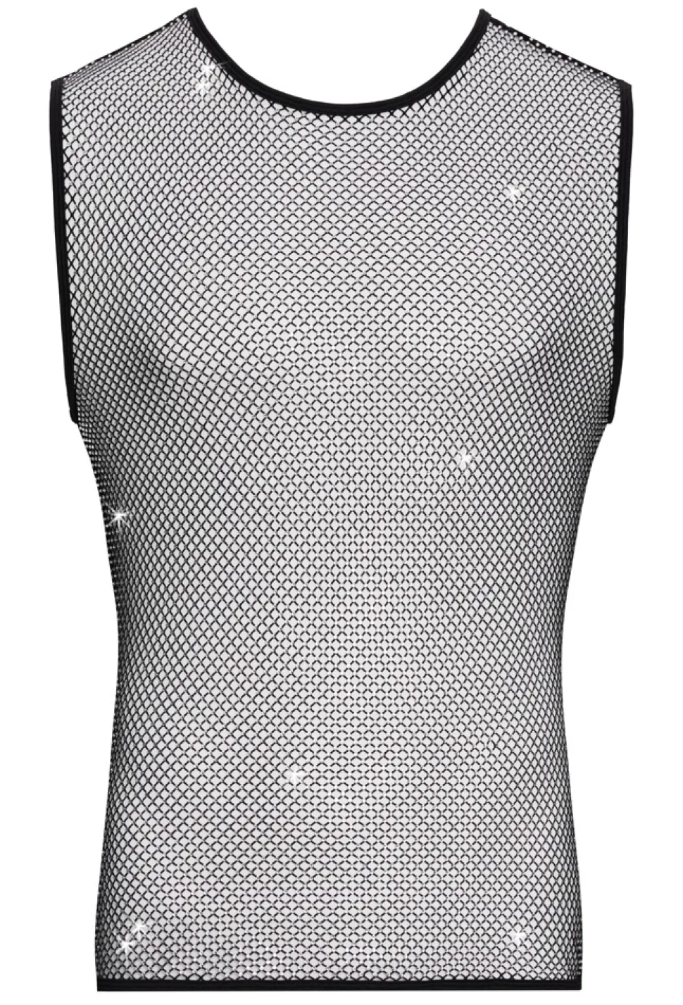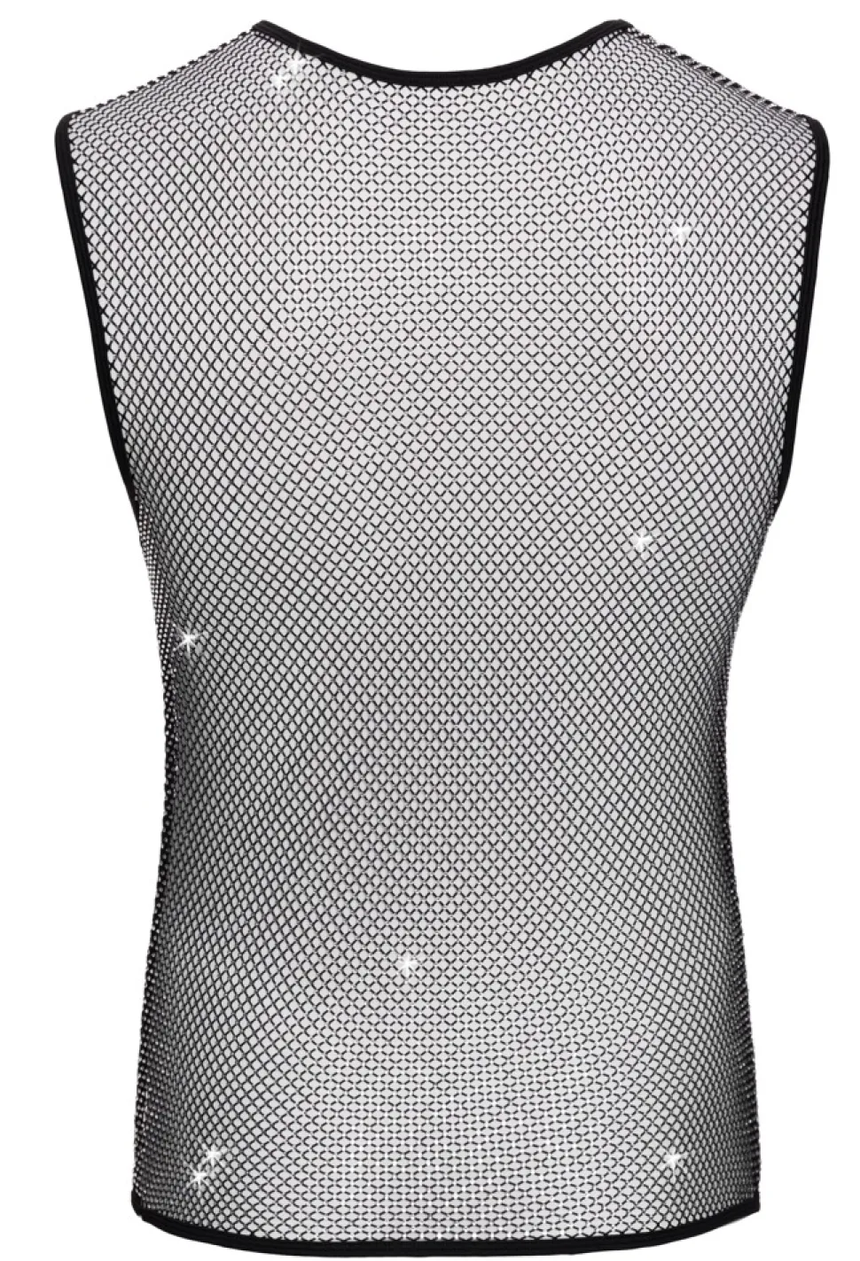 Betonendes, ärmelloses Netz-Shirt von Svenjoyment in aufregender schwarzer Transparenz. Über und über mit funkelnden Glitzersteinchen besetzt. Rundum luftig und weich anschmiegsam für maximalen Tragekomfort.