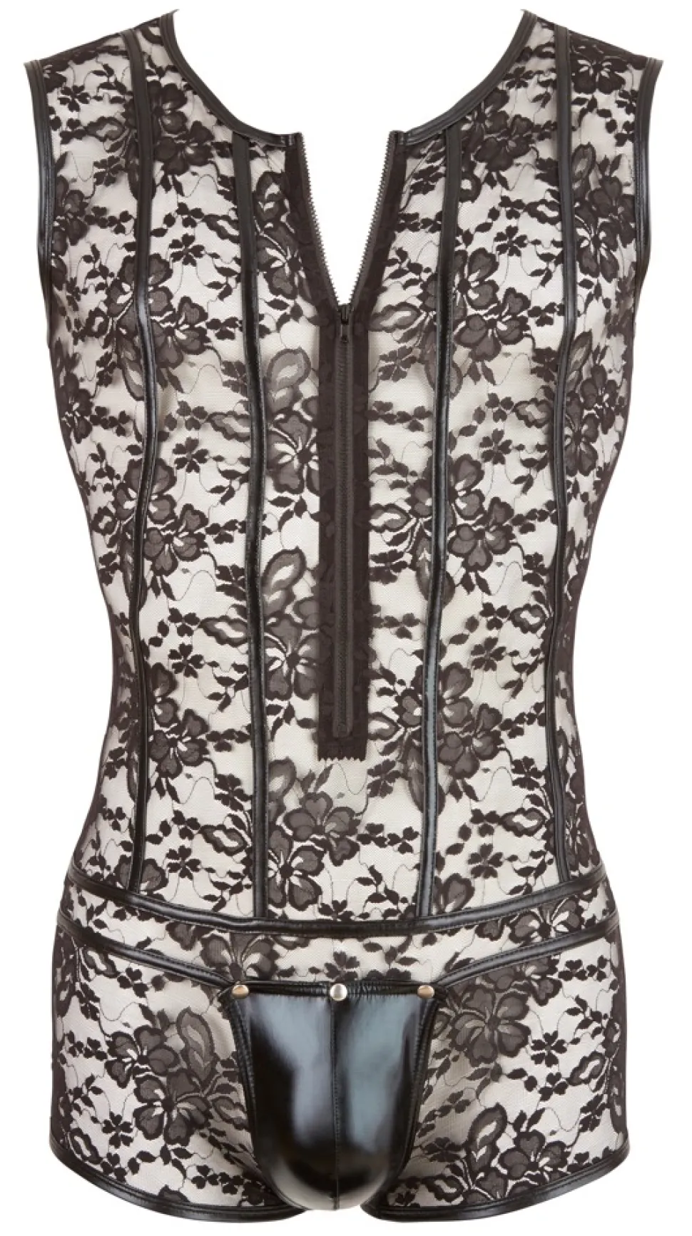 Dieser Body mit Front-Zip überzeugt in einer aufregenden Kombination aus elastischer, geblümter Spitze und schmalen Wetlook-Streifen. Mithilfe der eindrucksvollen Swell-Funktion lassen es den Schritt erregend voluminös erscheinen, indem Penis und Hoden spielend leicht durch das innen liegende Stretchloch in den Beutel geschoben werden… Beutel aufknöpfbar.