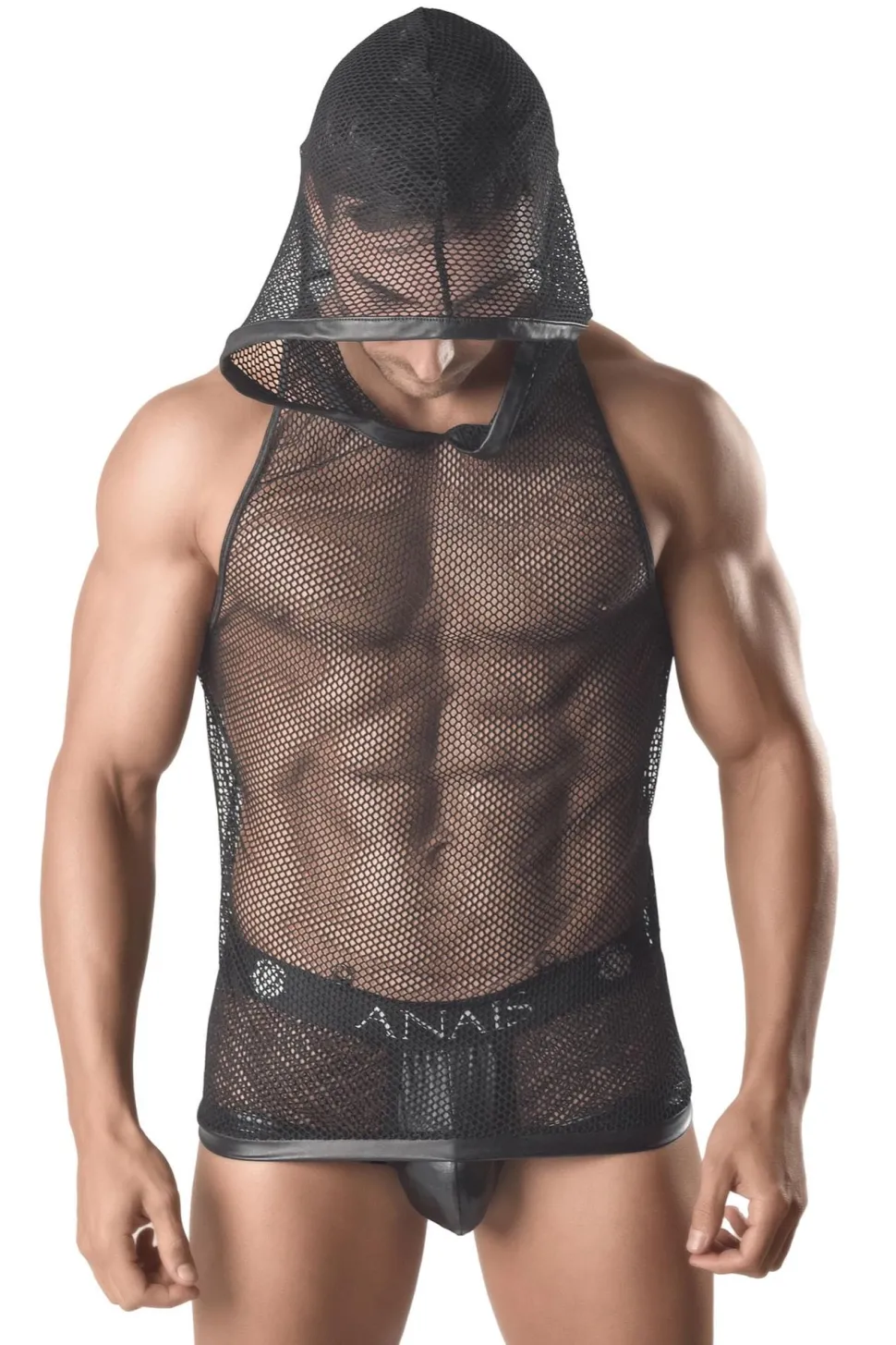 Herren Hoodie, gefertigt aus dehnbaren Netz und matten Wetlookmaterial, am unteren Saum und der Kapuze (ohne Boxer).