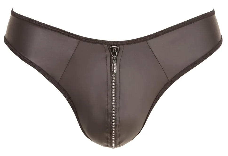 Und zuckende Hände… Edle Neopren-Optik mit glitzerndem Eyecatcher: Bevor er fast gesprengt wird, ist der strassbesetzte Reißverschluss dieses neckischen Höschens ruckzuck geöffnet!