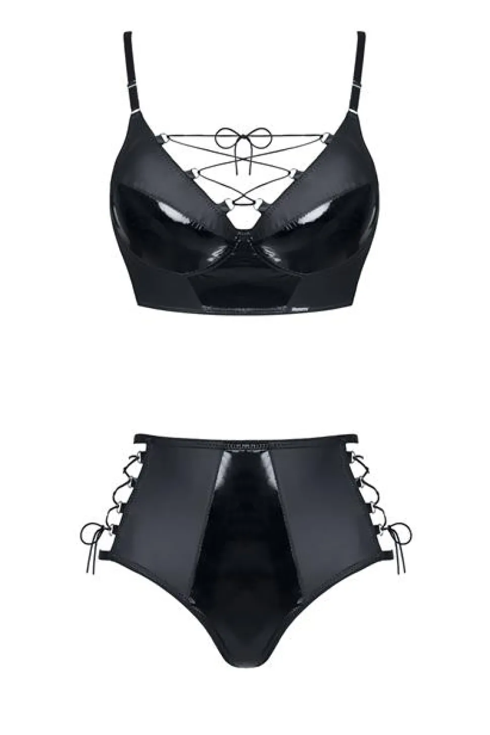 - aus elastischem, mattem Wetlook-Material und glänzendem PVC-Material