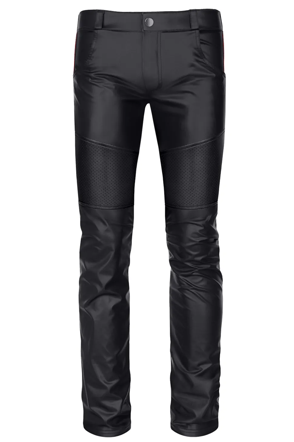 Lange Hose im Slim Fit Schnitt, Mit dekorativen perforierten Wetlook Einsätzen. Die Taschen sind funktional und die tiefe Taille rundet dieses gute Stück ab.
