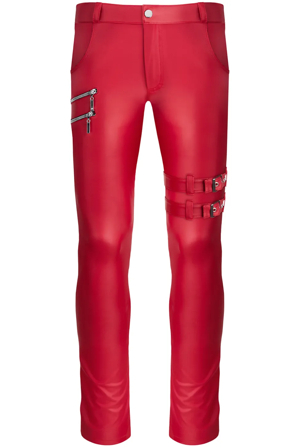 Spektakulär effektive und moderne Hose mit tiefer Taille. Sie zeichnet sich durch perfekt ausgearbeitete Details aus. Am rechten Oberschenkel 2 dekorative Reißverschlüsse in dunkler Metallfarbe. Im unteren Teil des linken Oberschenkels befinden sich 2 Riemen mit Schnallen und dekorativen Metallverschlüssen mit Funktionsregulierung. Auf der Rückseite, im unteren Teil der Beine, befinden sich 2 dekorative Reißverschlüsse. Taschen vorne und hinten. Dank dessen ist es kein Problem, das Telefon, die Brieftasche und andere kleine Gegenstände zu verstauen. Die Hose hat Gürtelschlaufen.
