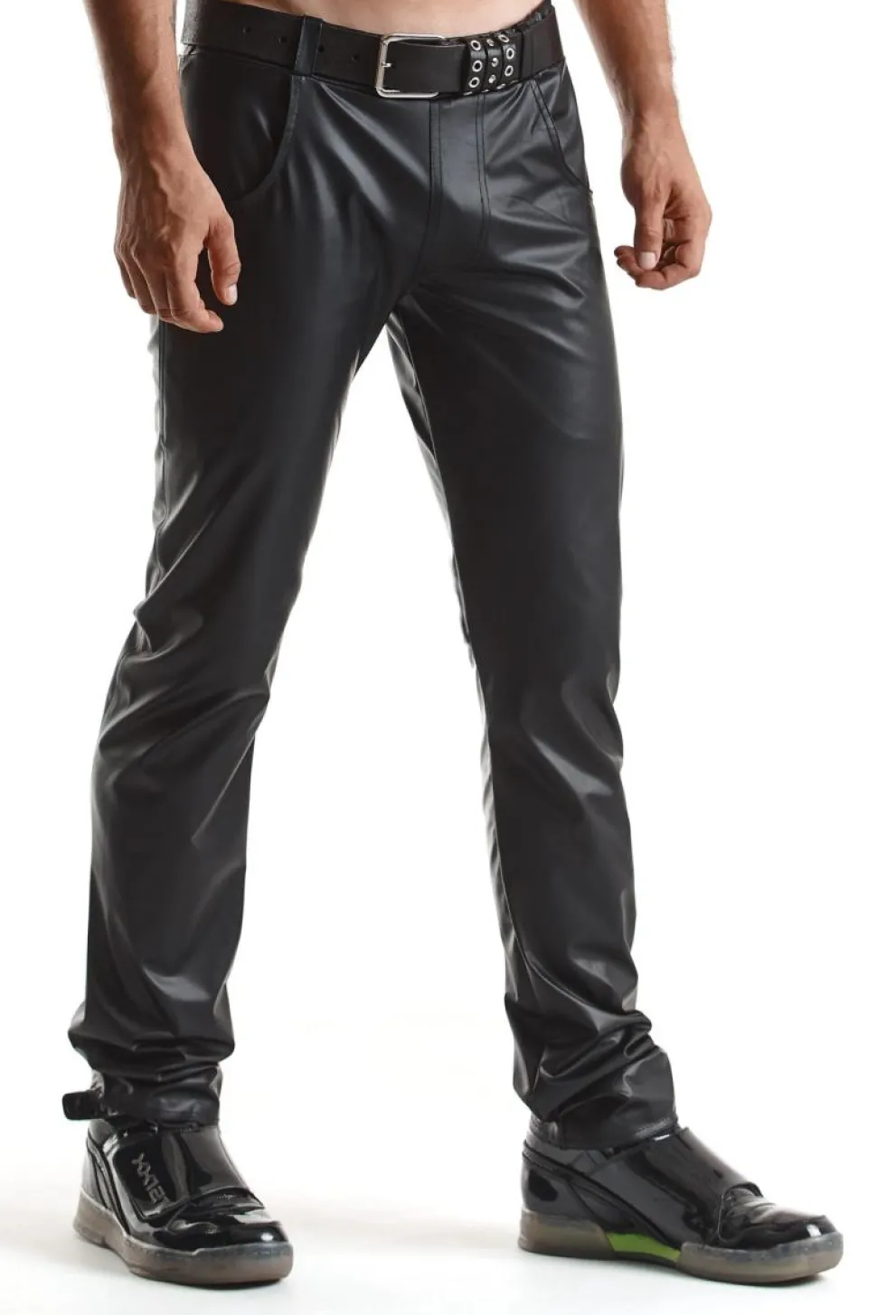Hose mit tiefer Taille, gefertigt aus elastischem, schwarzem Wetlook-Material. Die tiefe Taille und schmalere Hüftlinie betonen die Form des Gesäßes. Die ebenfalls abgesenkten Gesäßtaschen betonen ihre Form noch mehr. Taschen auf Vorder- und Rückseite sind eine praktische Lösung. Sie können darin Schlüssel, Geldbörse, Telefon usw. verstecken. Die Hose haben Gürtelschlaufen. Roter Alcantara-Patch mit lasergebranntem RFP-Logo und roter Naht unterstreichen die Einzigartigkeit des Produkts.