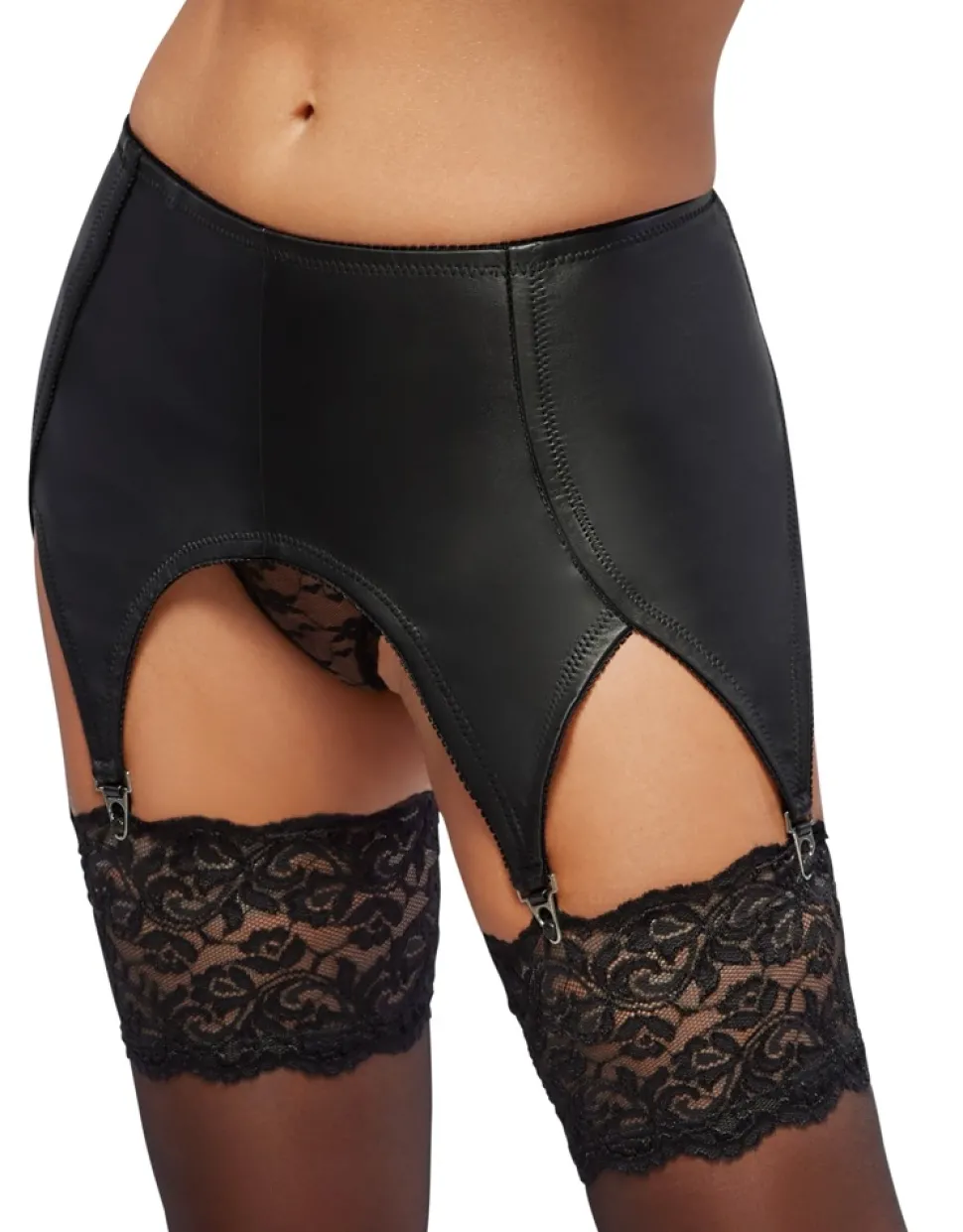 Strapsgurt von ZADO aus weichem Lammleder. Im Retro-Style mit 4 Strumpfhaltern aus Metall. Im Rücken mit Hakenverschluss.