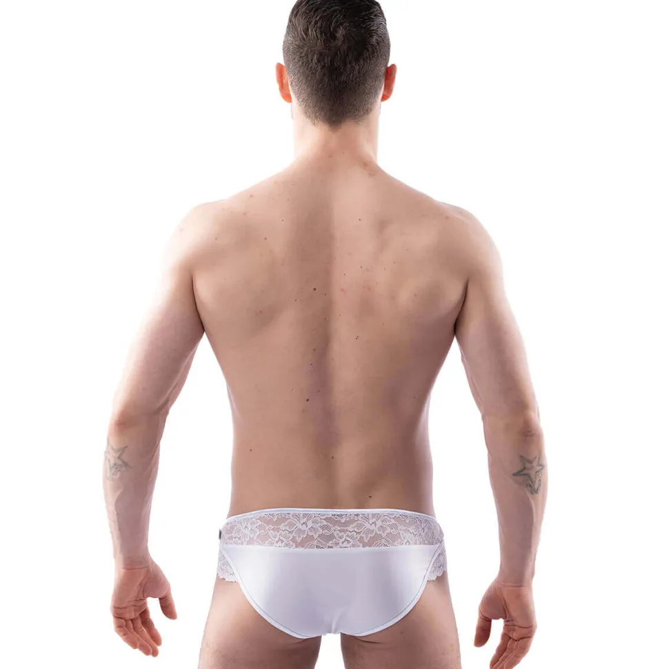 Rundherum aus zarter, weißer Spitze versteckt dieser knappe Brief nur die wichtigsten Stellen zur Gänze. Gebe dich mit Leonardo ganz deiner Leidenschaft & Fantasie hin.