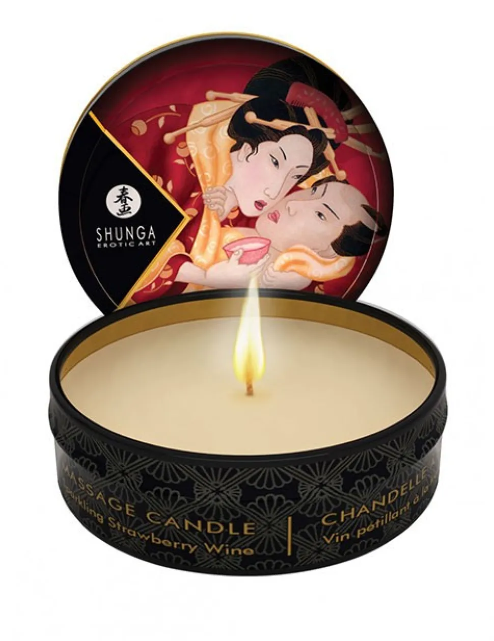 - 6 Shunga Massagekerzen (30 ml) mit dem Aroma von fruchtigem Erdbeer-Wein