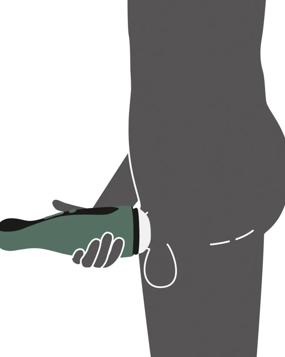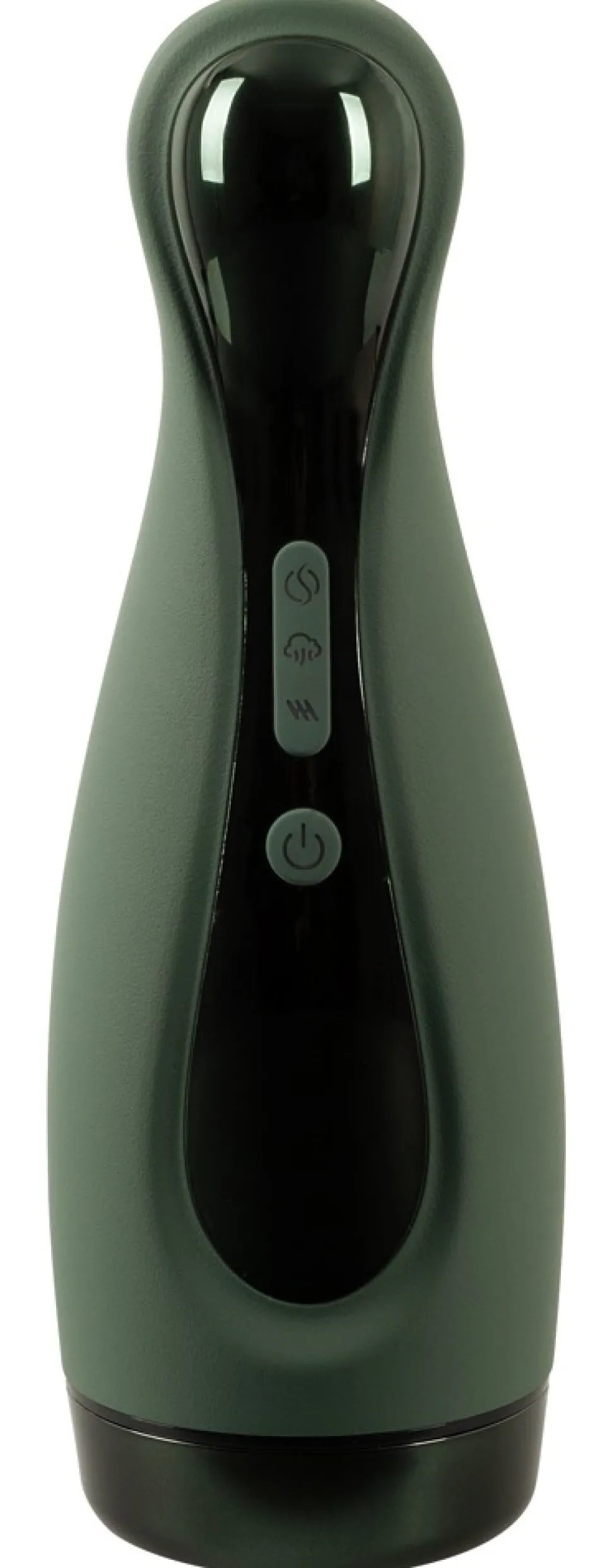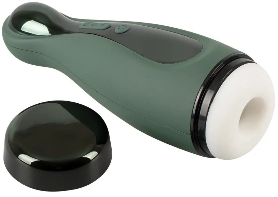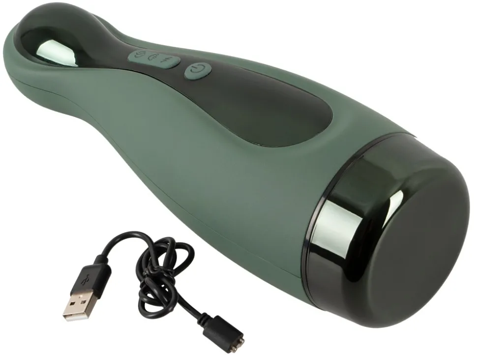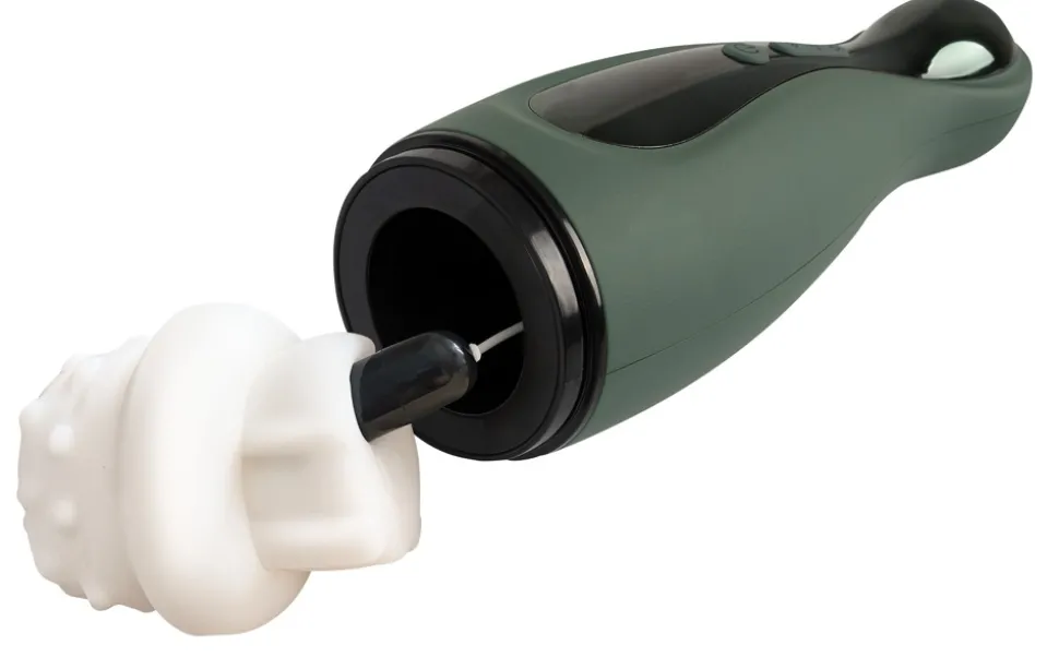 Handlicher, schmal zulaufender Masturbator with 2 Functions von Rebel, der Saugfunktion und Vibration miteinander kombiniert. 6 Vibrations- und 3 Saugmodi sorgen dabei für lustvolle Abwechslung und sind separat per Knopfdruck direkt am Toy bequem steuerbar.