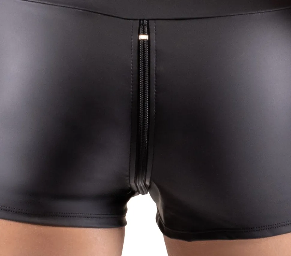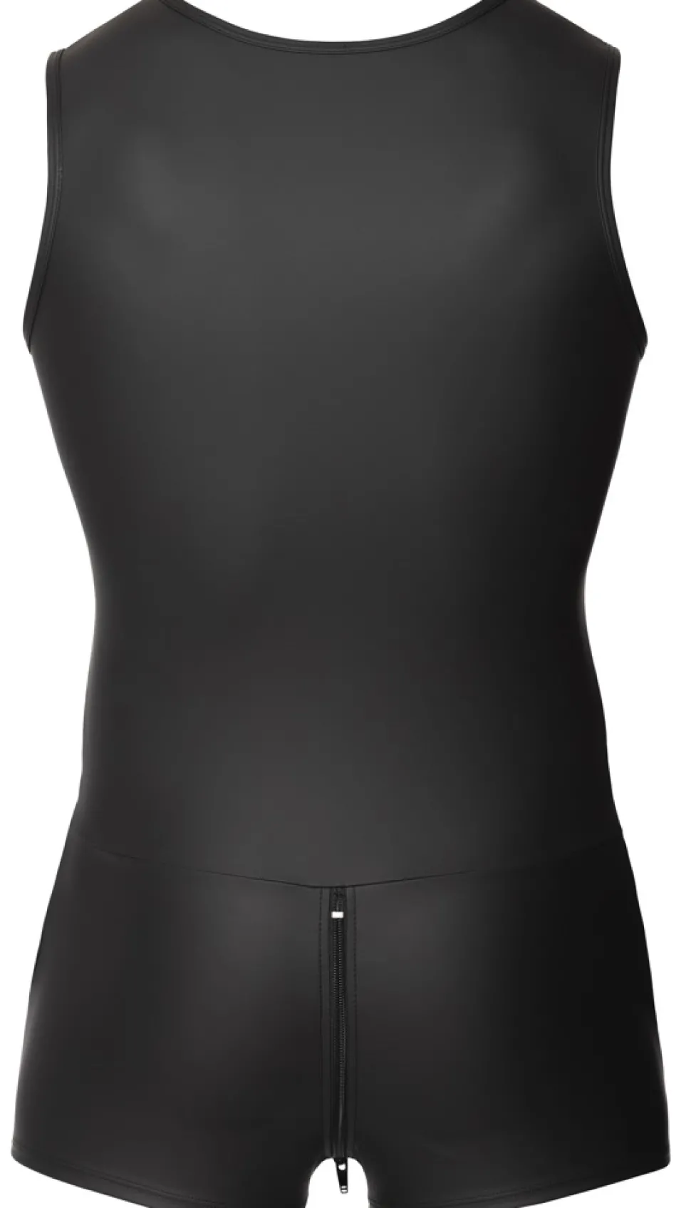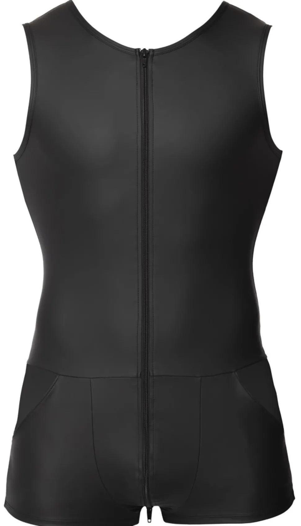 Ärmelloser Overall von Svenjoyment mit kurzem Bein und großen Eingrifftaschen. Rundum im trendigen schwarzen Mattlook und körperbetont geschnitten. Mit 3-Wege-Reißverschluss halsabwärts durch den Schritt bis über den Po. Die elastische Qualität schmiegt sich passformsicher hautnah an und trägt sich höchst bequem und komfortabel.