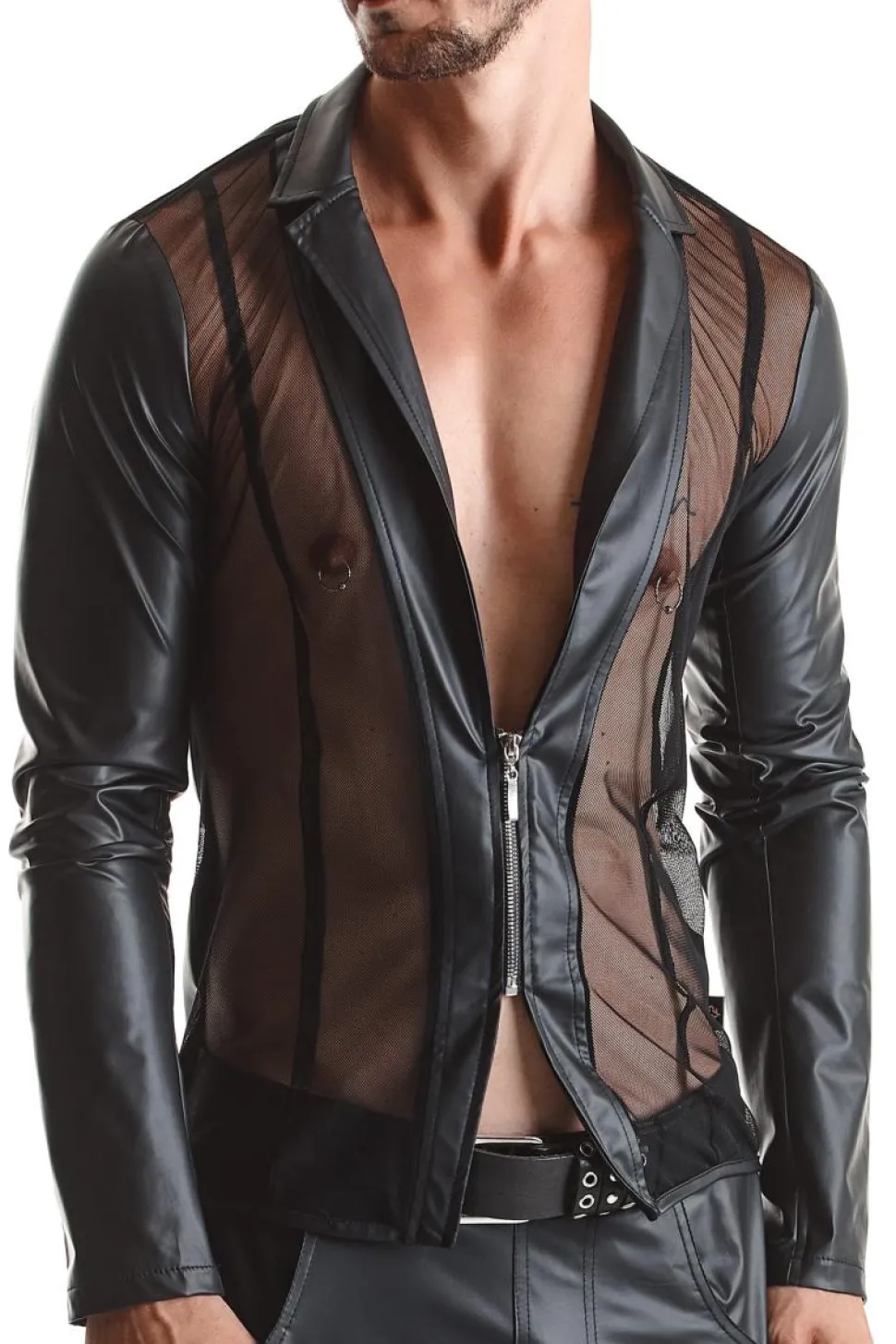 - Jacke aus Wetlook und feinem Netzmaterial