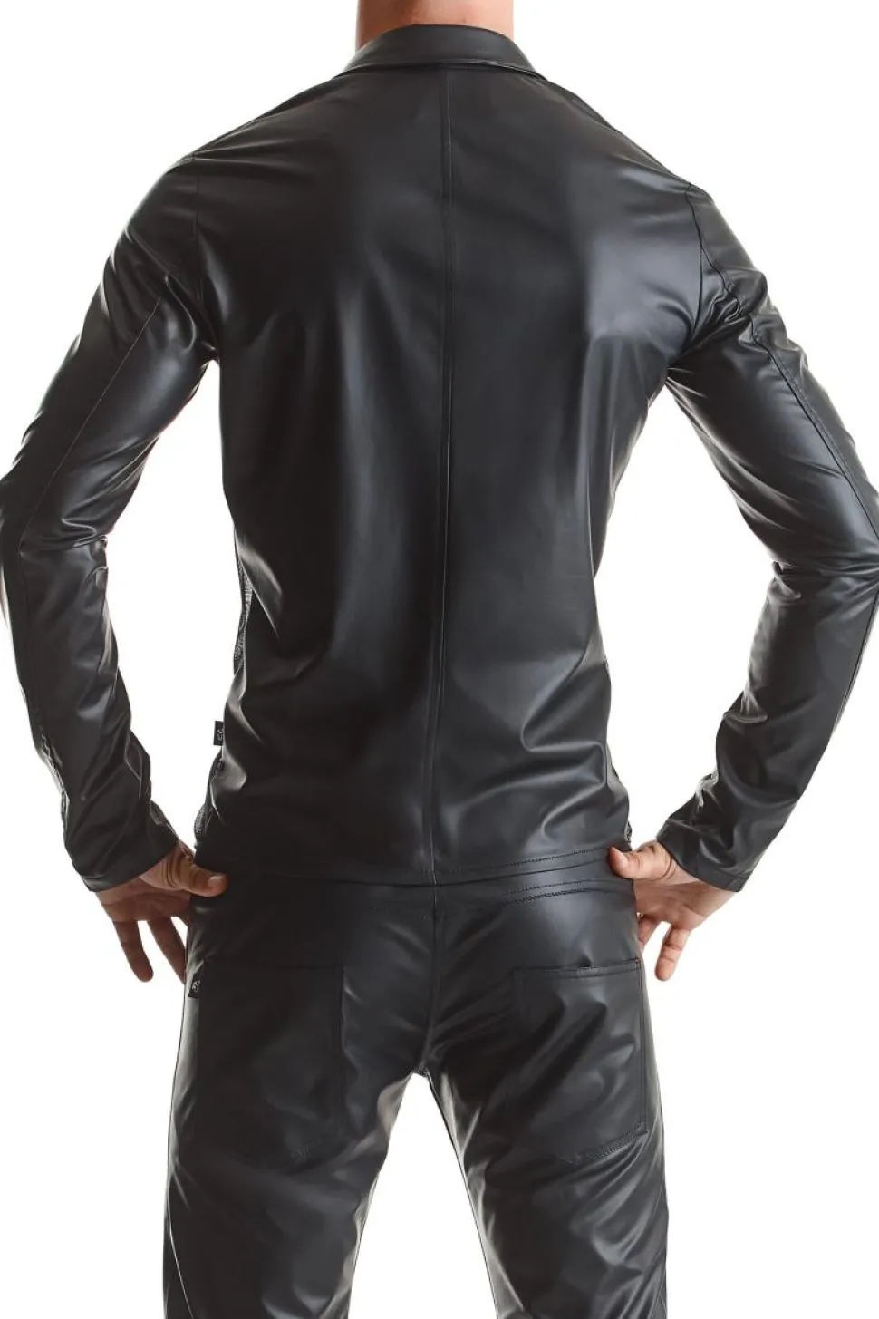 Die Jacke RMDaniele001 wird Ihre anspruchsvollen Erwartungen erfüllen. Vorne gibt es einen tiefen Auschnitt. Ein kurzer, silberner Reißverschluss sorgt für Stil, harmoniert wunderbar mit zahlreichen vertikalen Linien, die das schwarze Mesh und das schwarze Wetlook-Material verbinden. Slim-Fit-Schnitt mit senkrechten Linien im vorderen Bereich macht die Figur fantastisch schlanker. Rote Ziernähte und ein roter Alcantara-Patch mit RFP-Logo unterstreichen die Einzigartigkeit der Jacke.