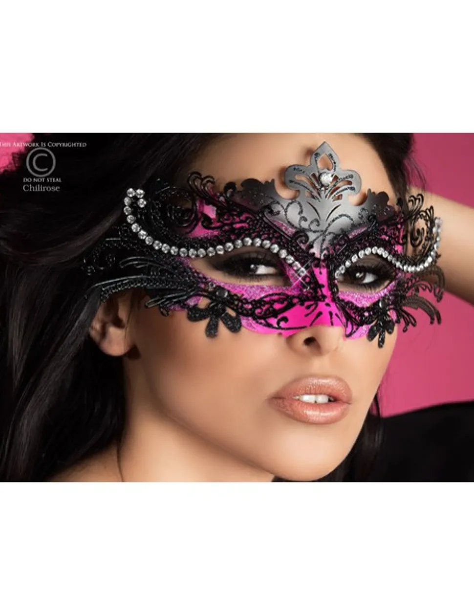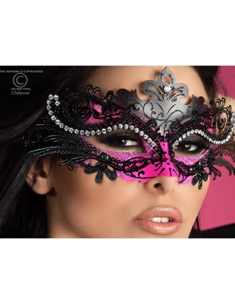 Chilirose – Metallmaske mit Strass-Steinen – Schwarz/Pink