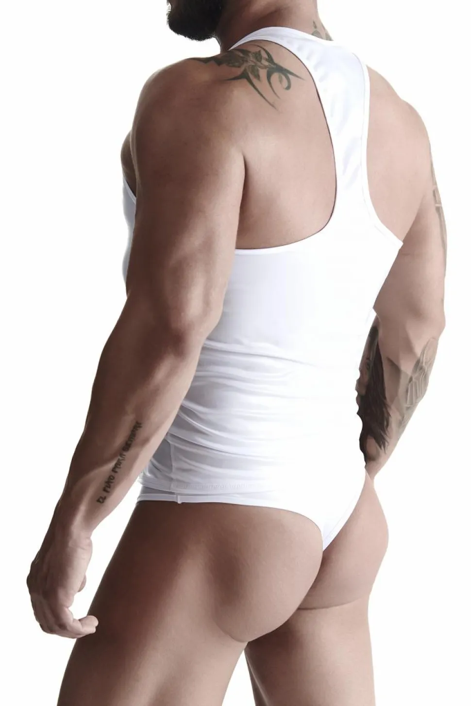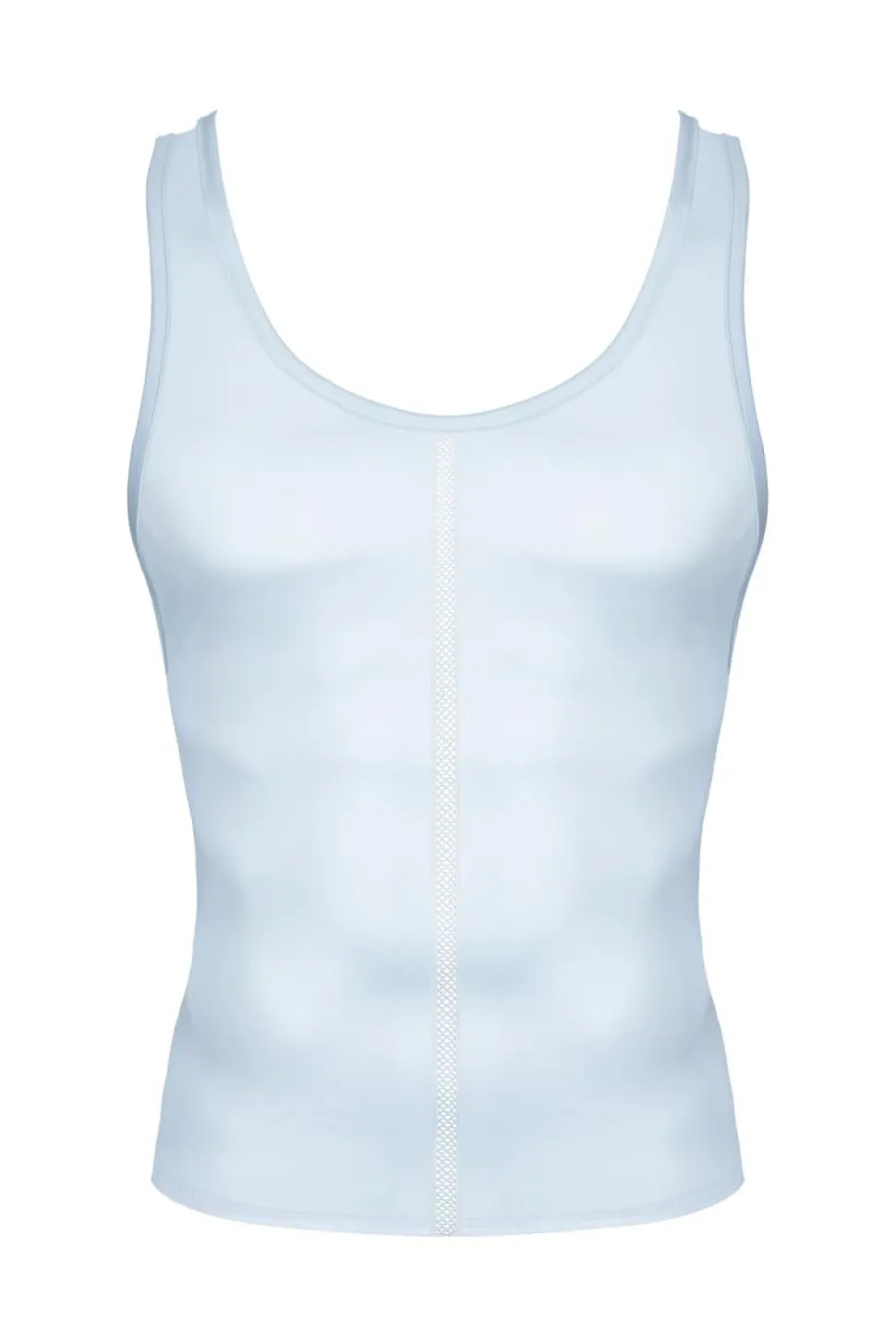 Ärmellose Shirts, gefertigt aus dehnbarem, mattem Wetlook-Material und Netz-Einsatz.