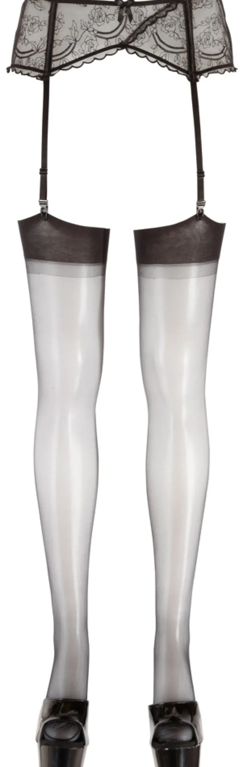 Seidige Straps-Strümpfe mit schlichtem Abschluss, Ziernaht und Hochferse. Ein zeitloser Klassiker zum Anclipsen an den Strapsgurt. 15 den. Oekotex-zertifiziert.