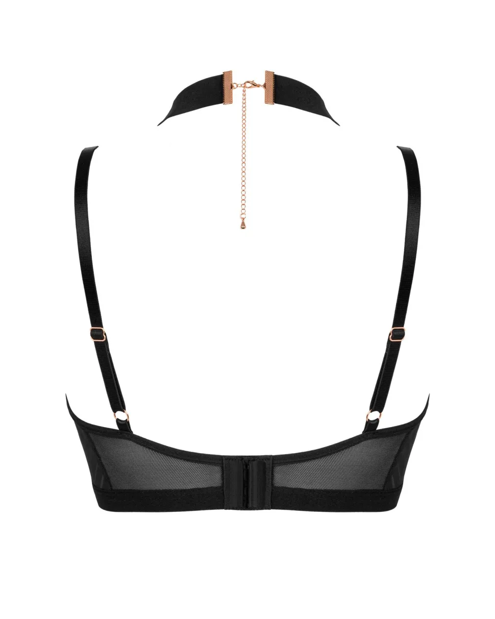 Eleganter Neckholder Soft-BH gefertigt aus zarten Materialien. Die elastischen Riemchen um den Hals sind individuell einstellbar. Mit verstellbaren Trägern, eingearbeiteten Bügeln sowie einem Verschluss auf der Rückseite