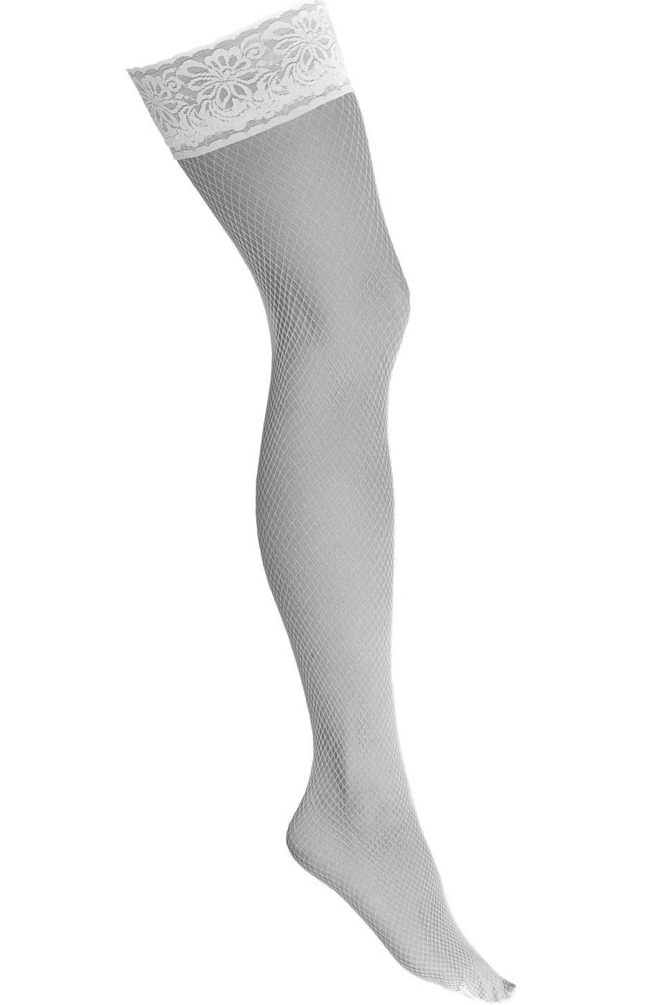 Verführerische Netzstrümpfe gefertigt aus feinmaschigem Netz. Obenrum mit einem Spitzenrand versehen.