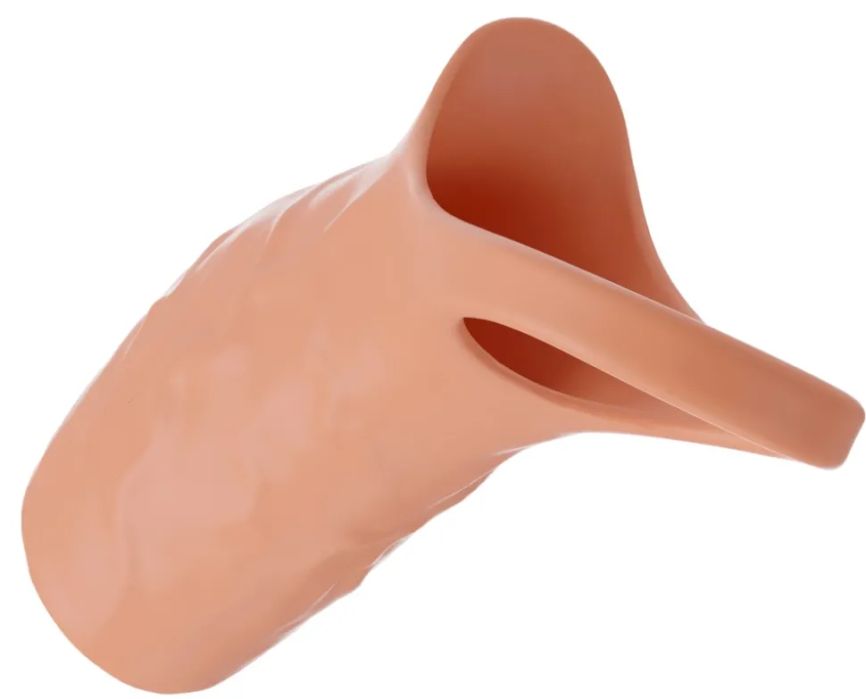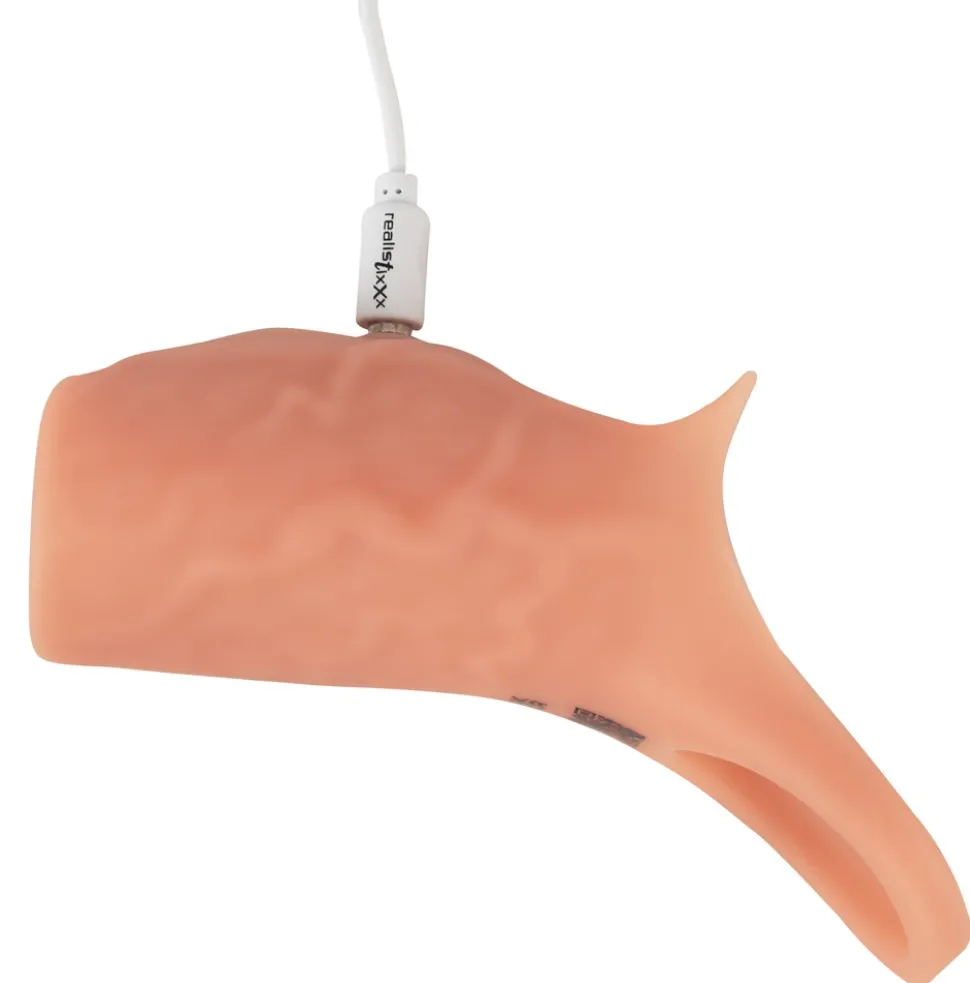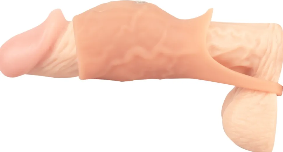 Aus seidig softem Silikon mit feiner Äderung gefertigt, sieht die Penismanschette sehr realistisch aus und fühlt sich auch so lebensecht streichelweich an. Rundum elastisch schmiegt sie sich jedem Penis hautnah an. Dank der Materialstärke und der federleichten, flachen Vibrationseinheit wird der Penis im Umfang spürbar vergrößert. 10 Vibrationsmodi sind einfach per Knopfdruck direkt an der Hülle bequem steuerbar.