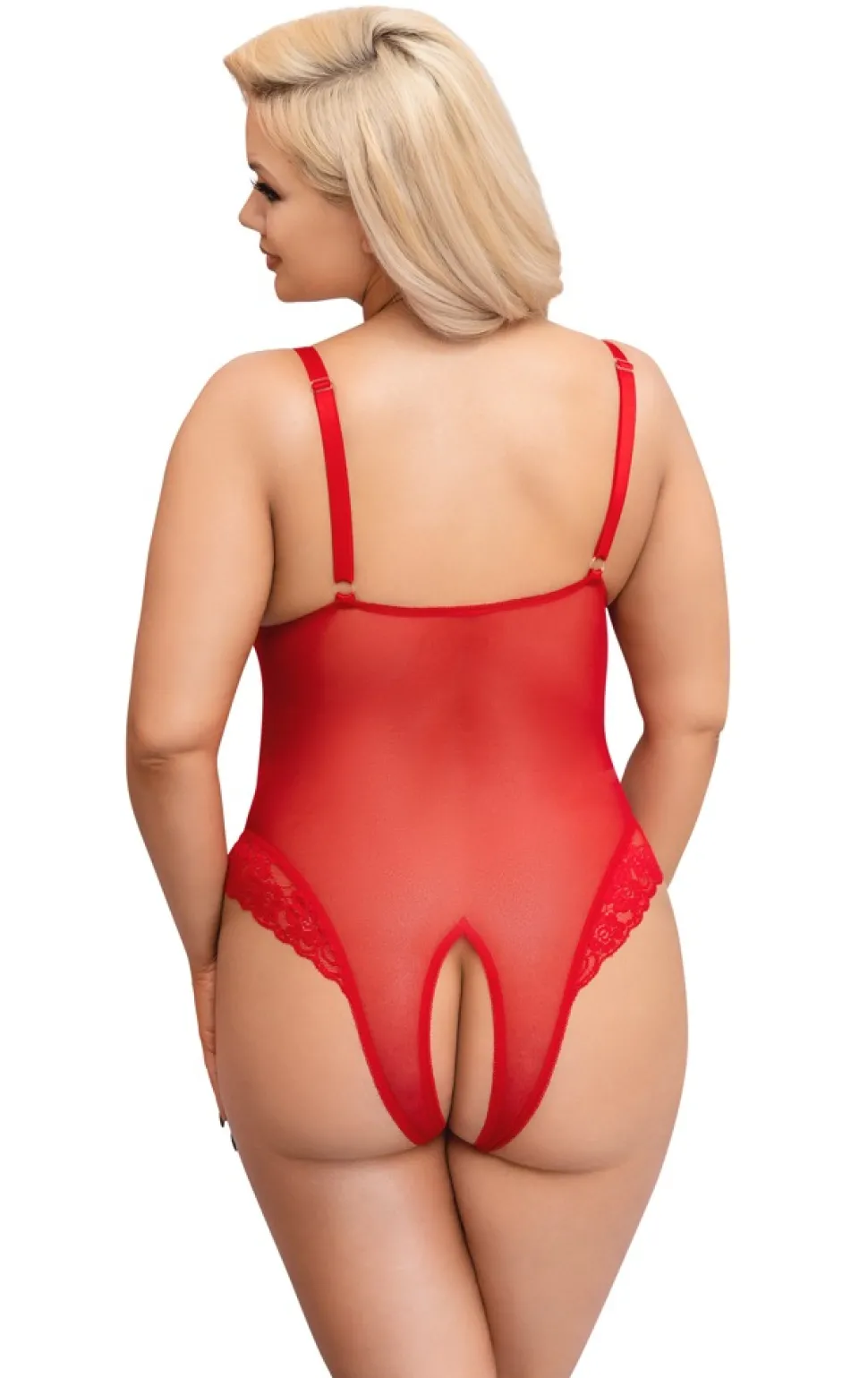 Für feurige Verführmomente! Rot-transparenter Body ouvert von Cottelli Collection aus feinem Powernet mit Soft-Cups und Einsätzen aus zarter Spitze. Rundum elastisch und soft anschmiegsam für hautnahen Sitz mit höchsten Tragekomfort. Im Schritt einladend geöffnet. Die breiten Träger sind für perfekte Passform in der Länge verstellbar.