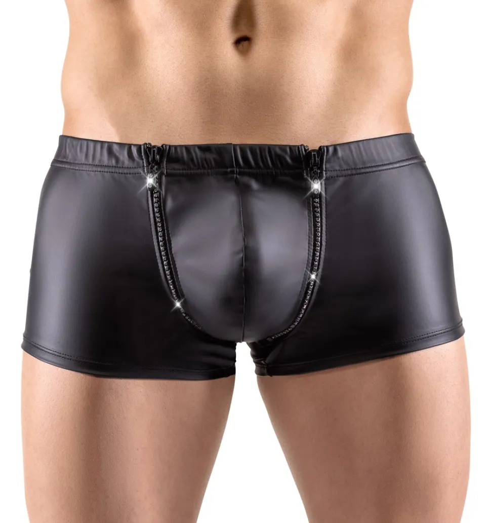 Schwarze betonende Pants von Svenjoyment im trendigen Mattlook – schmiegt sich hautgenau an. Beutel jeweils seitlich mit unterlegtem strassbesetztem Reißverschluss zum Öffnen, sodass dieser komplett runtergeklappt werden kann. Rundum weich und elastisch für höchsten Tragekomfort.