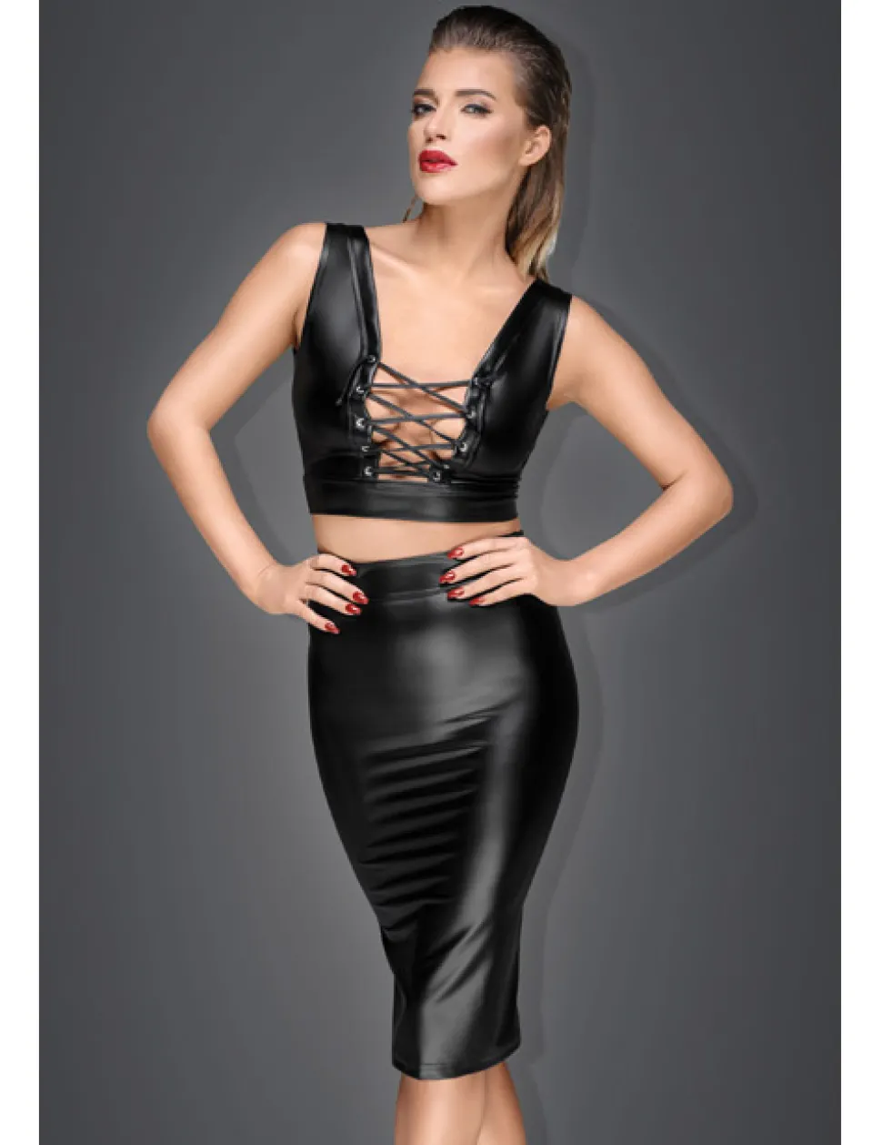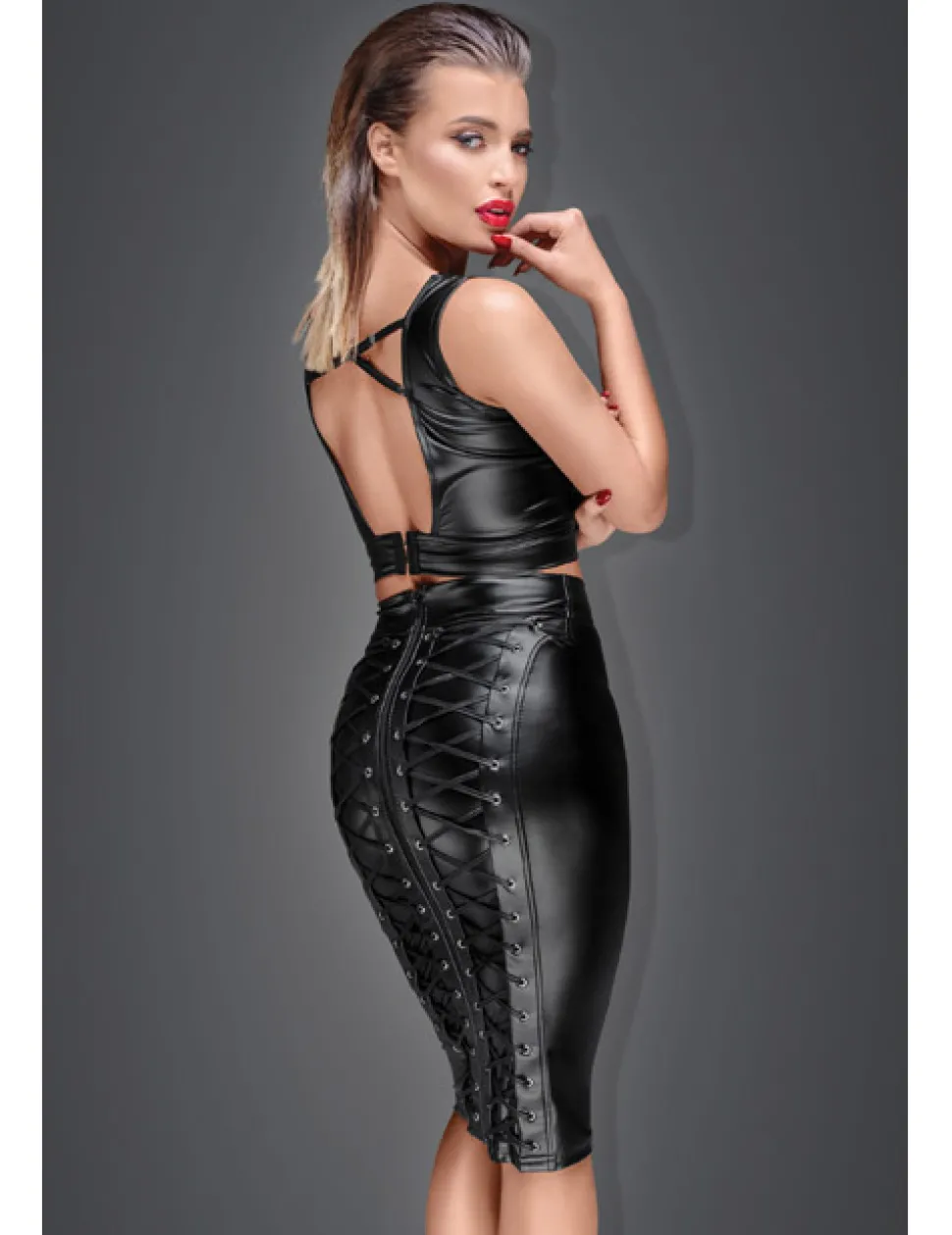 Hautenger Wetlook-Overall mit Two-Way-Reißverschluss in schwarz