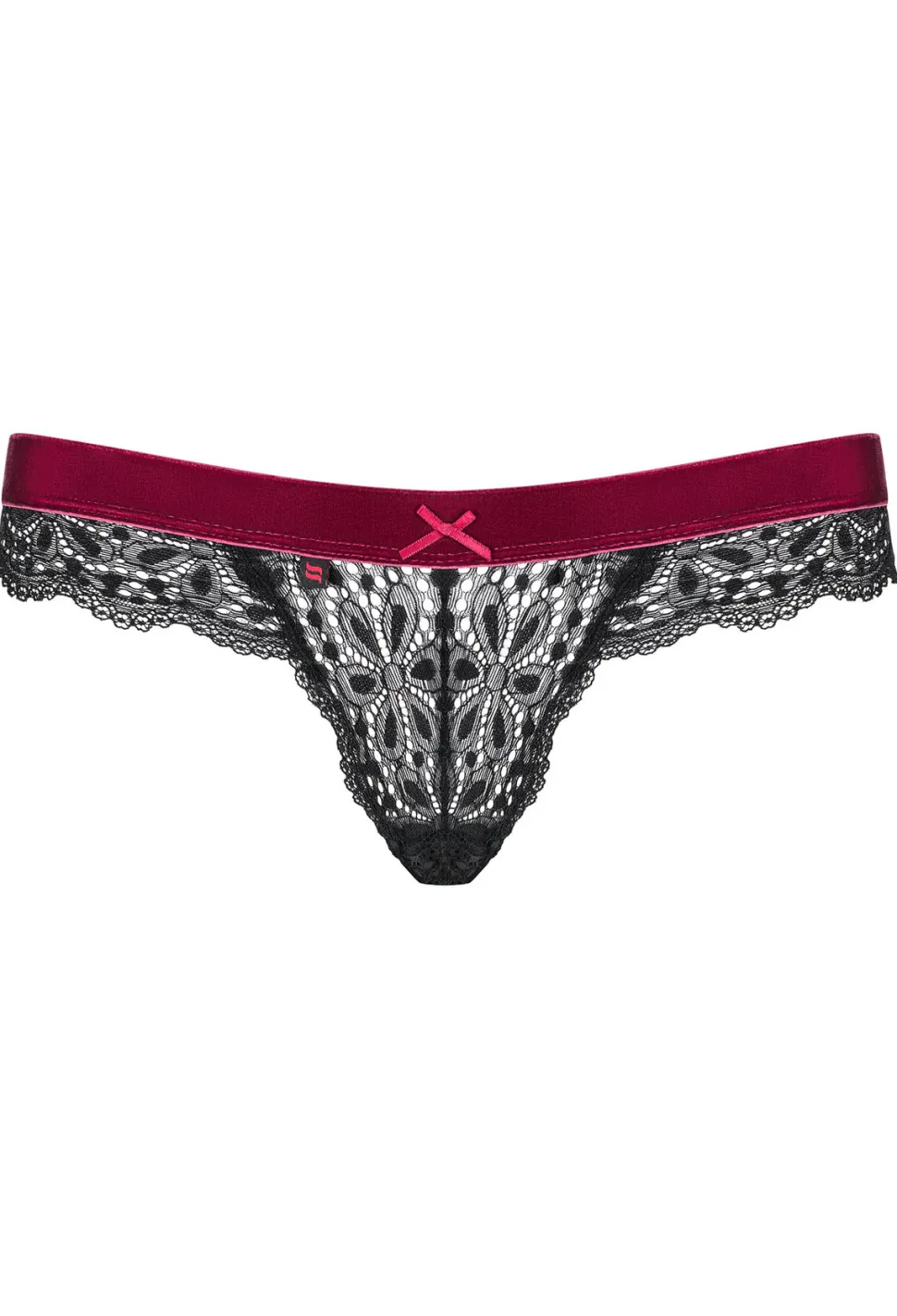 Himmlische Verführung! Dieser heiße Tanga wird Deine Verehrer so richtig um den Verstand bringen. Gefertigt aus zarter Spitze und elastischen Materialien, passt sich Der Tanga perfekt an Deinen Körper an. Ein Muss in jeder Kommode.