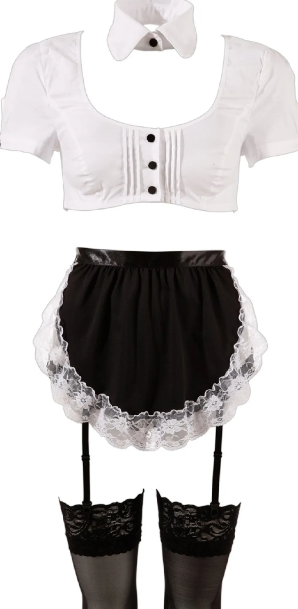 - Material: Top+Halsband: 98% Baumwolle, 2% Elasthan; Slip: 90% Polyamid, 10% Elasthan; Schürze+Haarreif: 90% Polyester, 10% Elasthan; Strümpfe: 100% Polyamid