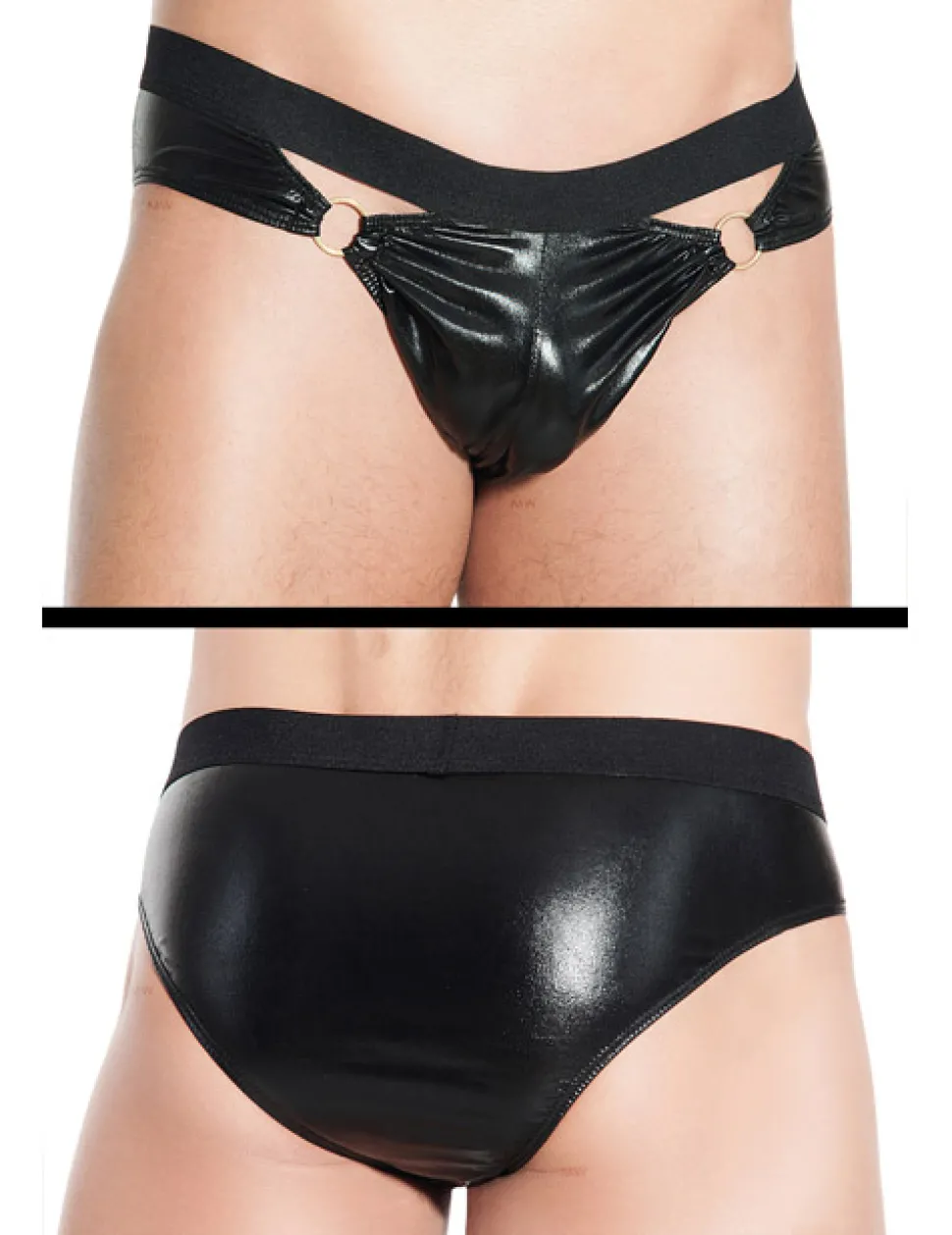– Herren-Slip aus schwarzem Wetlook-Material und breitem Gummibund