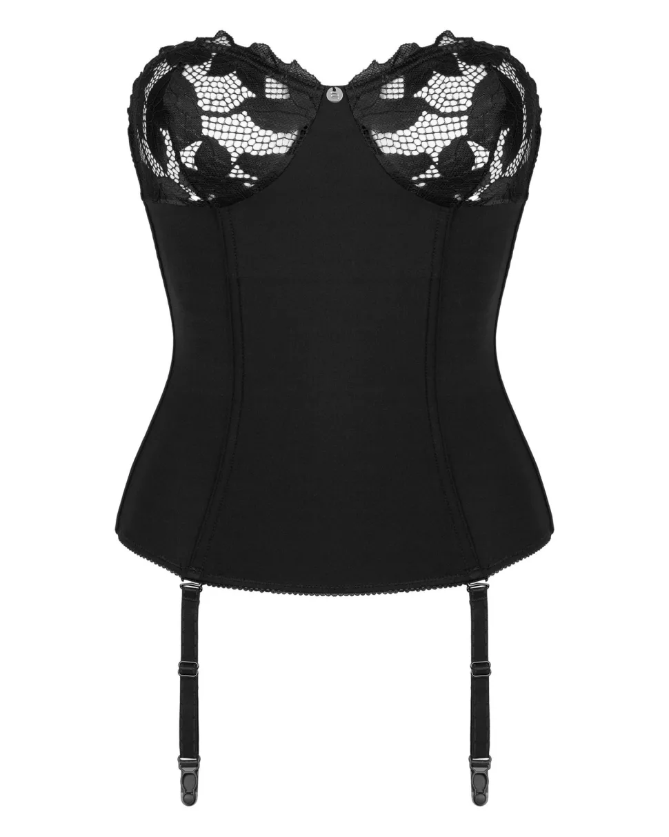 Bezaubernde Strapscorsage aus zartem Material, mit Muster. Hoher Tragekomfort. Auf der Rückseite mit Hakenverschluss versehen (durchgehend). ACHTUNG: ohne Strümpfe und Panty!