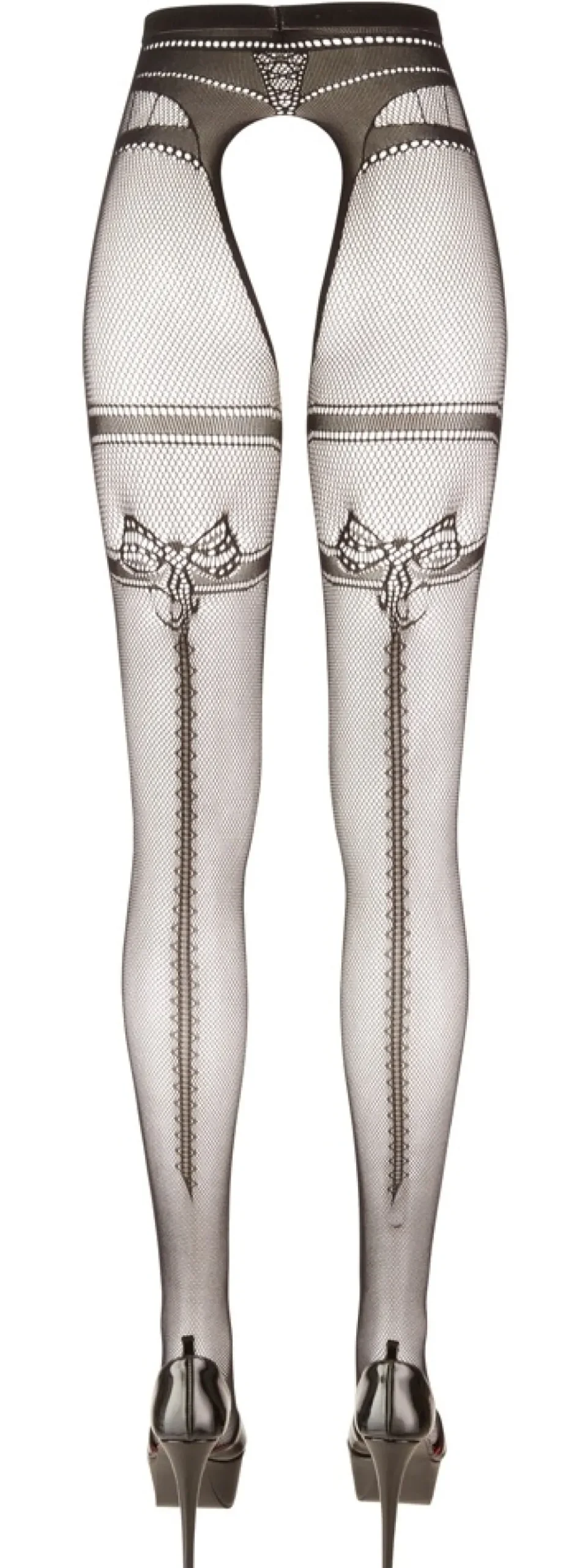 Seidig weiche Netzstrumpfhose ouvert von Cottelli LEGWEAR mit eingewebtem Strumpfband und Ziernaht hinten.