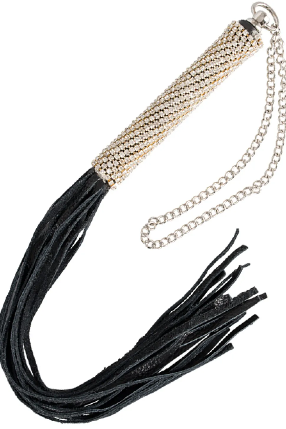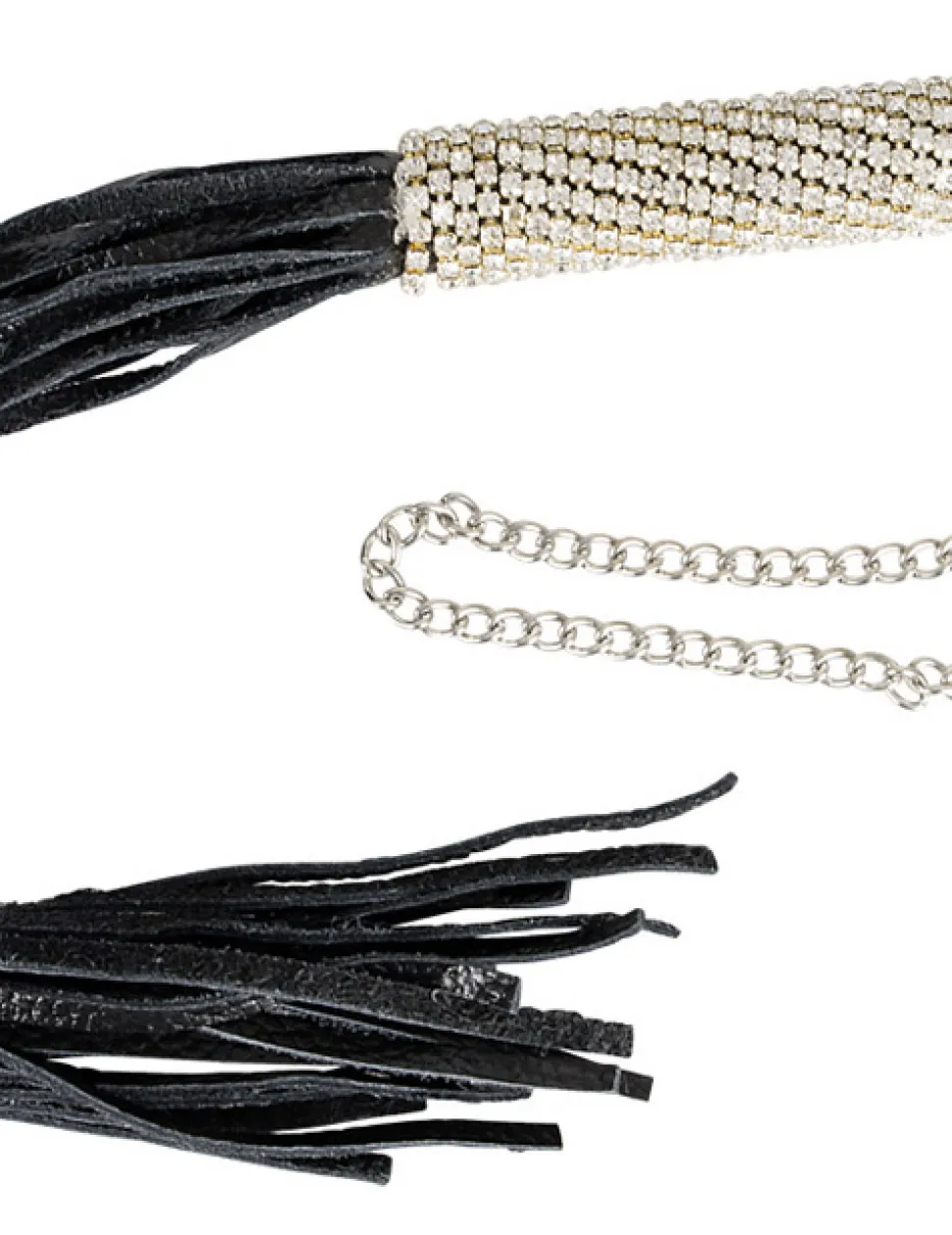 – schwarze Minipeitsche mit schmalen Striemen und strassbesetztem Griff