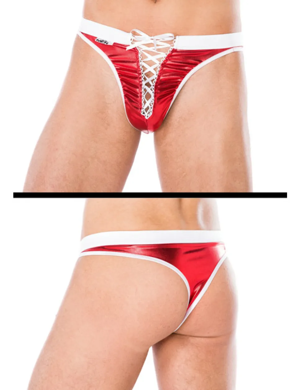 – Aus dehnbarem Wetlook-Material und breitem Gummibund